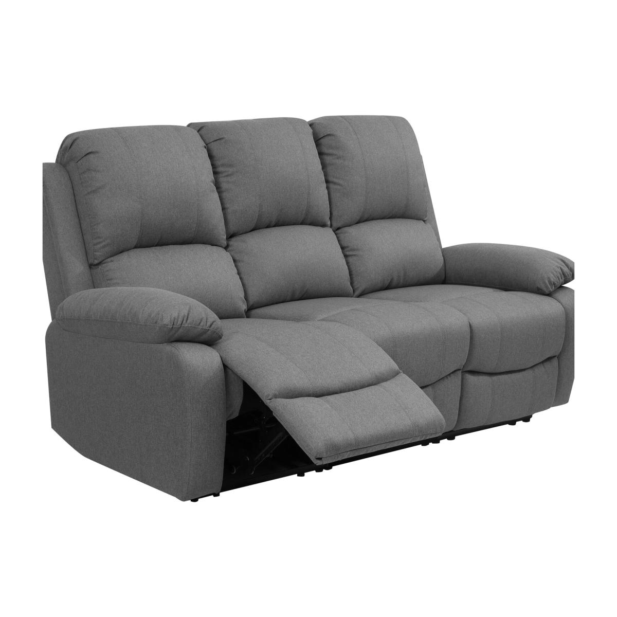 A stylish, modern fabric reclining 3 seater sofa available in Light or Dark Grey. This reclining sofa combines exceptional value with durable construction to bring you one of the most popular lines in our range. With its attractive, elegant design and high level of comfort, this fabric sofa is an ideal choice for all the family. The strong outline is continued through to the stitching on the back and seat cushions, and complemented by comfortable and supportive seating. Constructed using fine hard wearing materials and finished with soft fabric, the sofa combines strength and style, with the promise of many years of comfort and pleasure. PLEASE BE ADVISED THAT ALL DIMENSIONS ARE APPROXIMATE, PLEASE ALLOW ROOM FOR SLIGHT VARIATIONS.