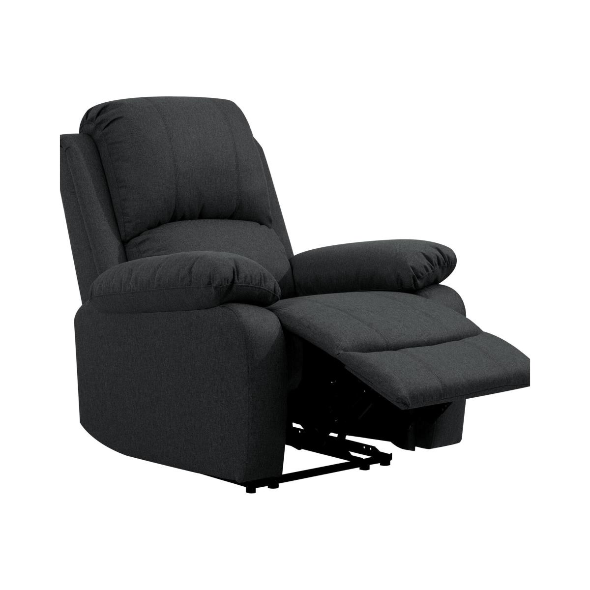 A stylish, modern fabric reclining chair available in Light or Dark Grey. This reclining chair combines exceptional value with durable construction to bring you one of the most popular lines in our range. With its attractive, elegant design and high level of comfort, this fabric chair is an ideal choice for all the family. The strong outline is continued through to the stitching on the back and seat cushions, and complemented by comfortable and supportive seating. Constructed using fine hard wearing materials and finished with soft fabric, the sofa set combines strength and style, with the promise of many years of comfort and pleasure. PLEASE BE ADVISED THAT ALL DIMENSIONS ARE APPROXIMATE, PLEASE ALLOW ROOM FOR SLIGHT VARIATIONS.