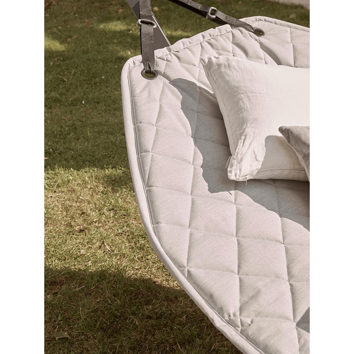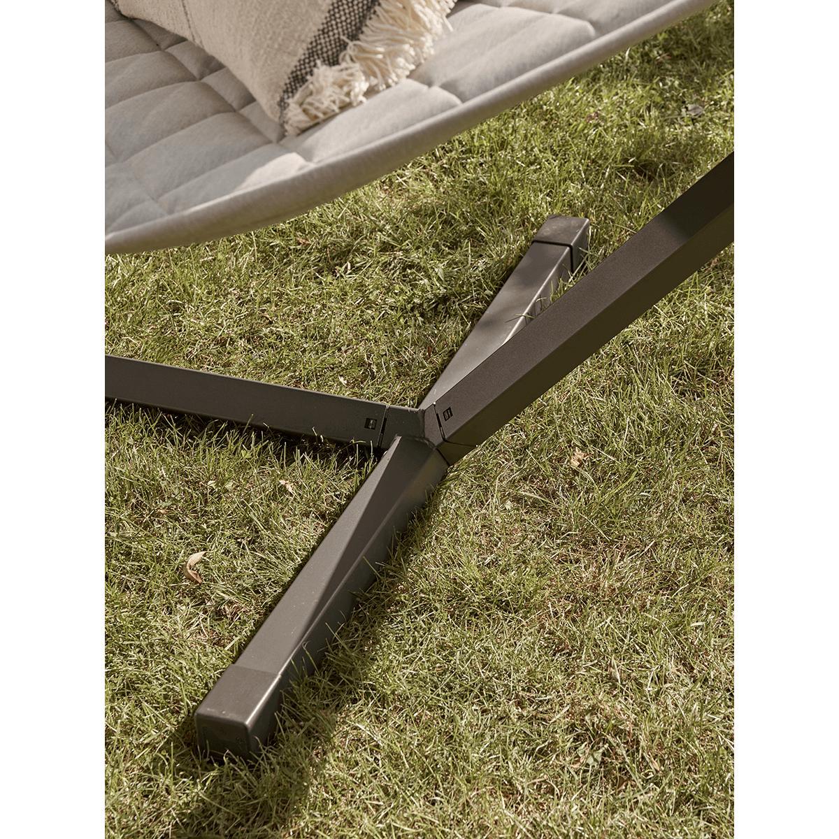 There’s nothing quite like whiling away those lazy summer days in the ultimate lounging experience of a hammock. With the wide aspect of the quilted sling you cannot fail to rest and unwind. Suspended from a powder coated steel frame and with shower proof fabric, our hammock is the perfect outdoor accessory with a substantial frame and stylish silhouette - arm yourself with a good read and enjoy.