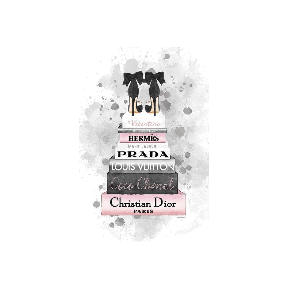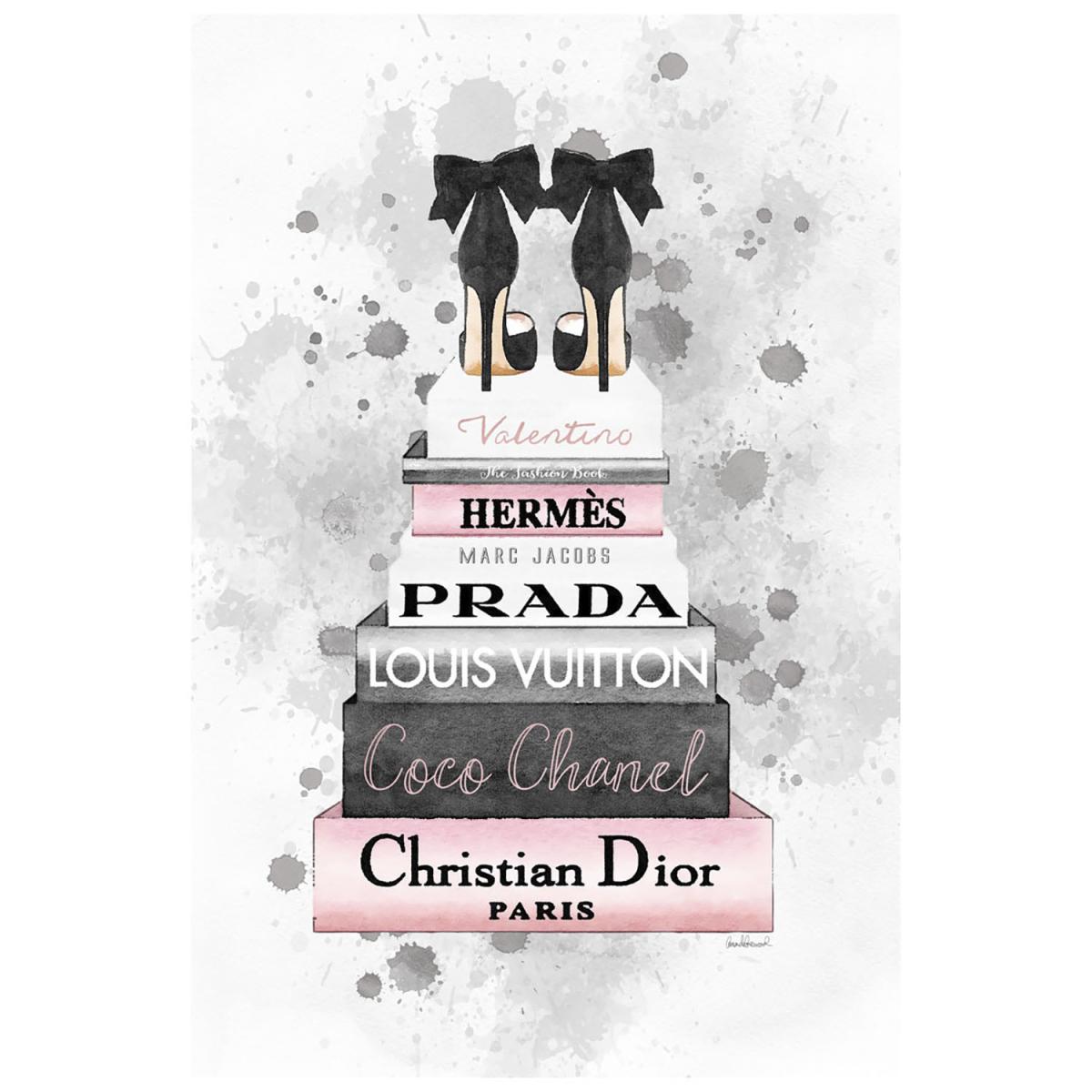 The Luxury Iconic Fashion Canvas is the perfect piece of wall art for any glamour girl's bedroom. It depicts a pair of black stilettos popped on top of a stack of designer boxes, including Valentino, Prada, Chanel, and more, all placed over a stylishly splattered background. Any fashionista would absolutely adore hanging this painting above her bed, where it can inspire her and her style every day!
