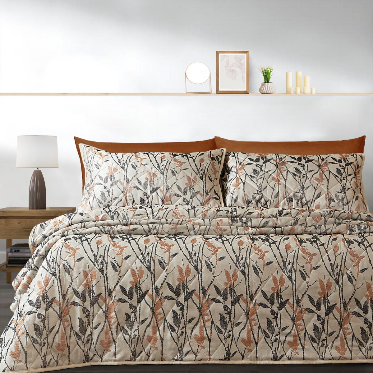 Luxury Jacquard Quilted Bedspread Sets - Natural / Double