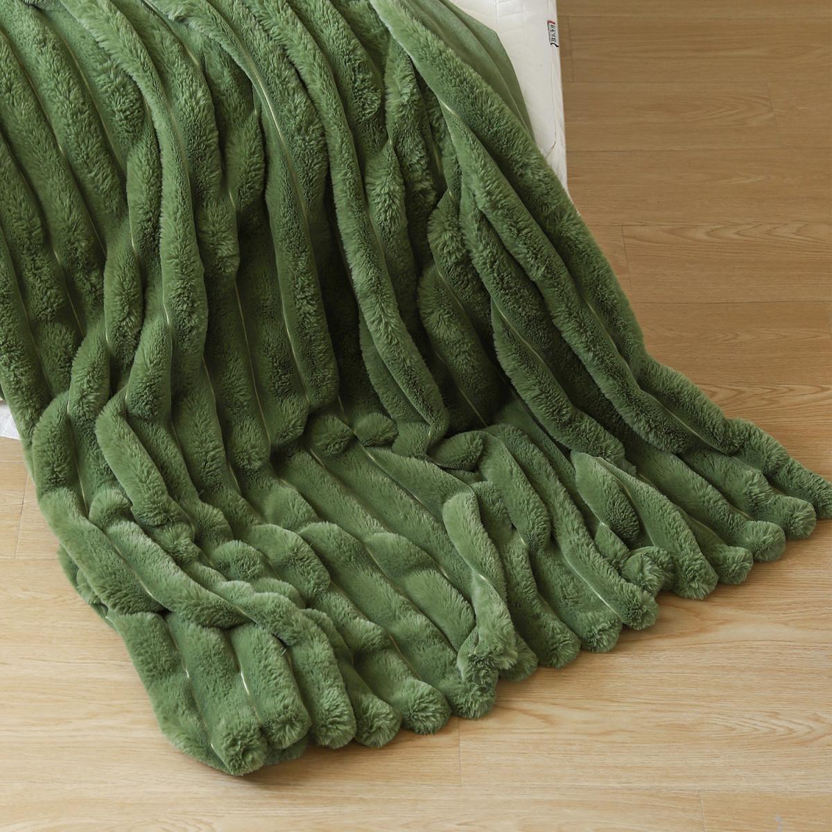 Luxury Jumbo Chunky Cord Fur Blanket - Olive