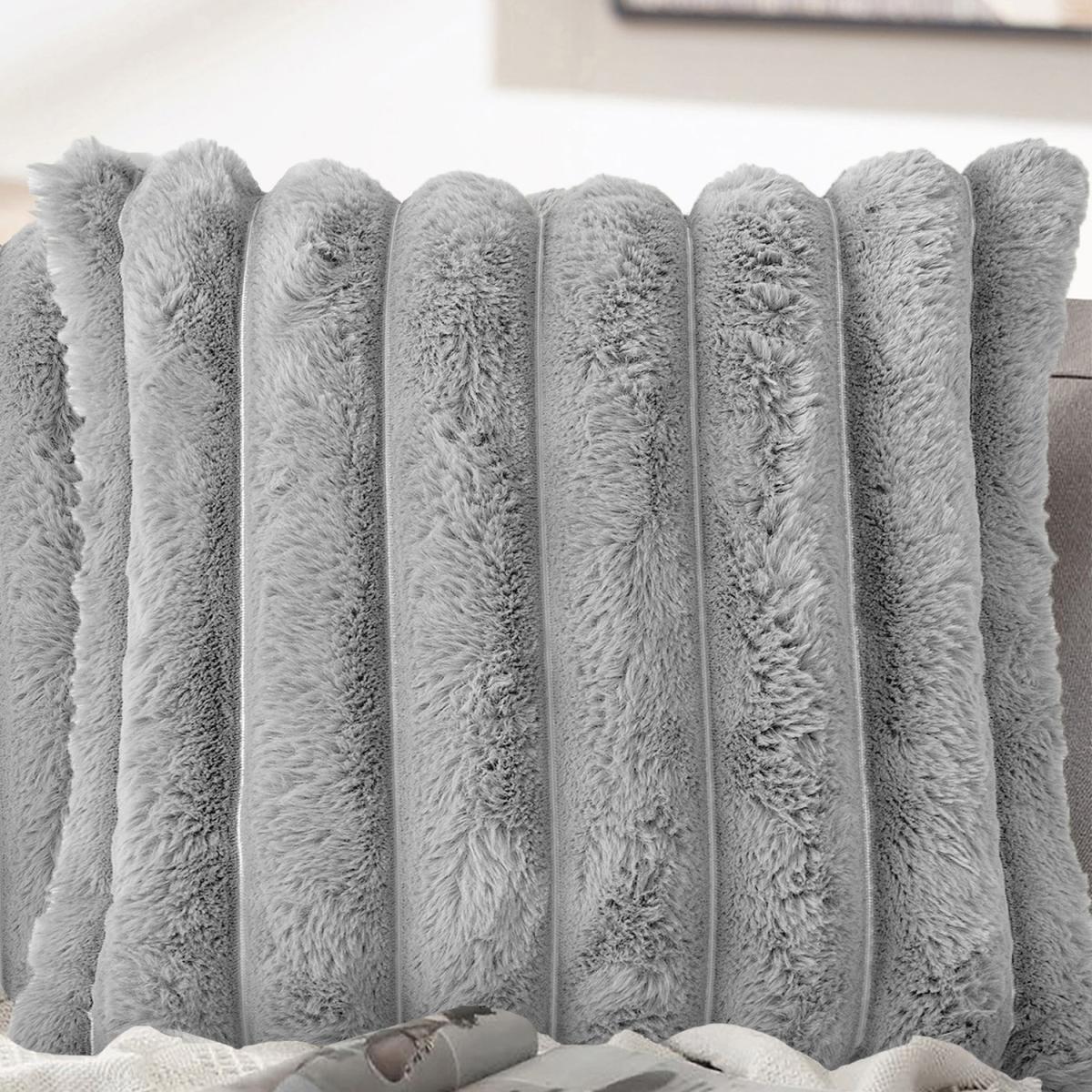 Luxury Jumbo Cord Faux Fur Cushion Cover - Silver