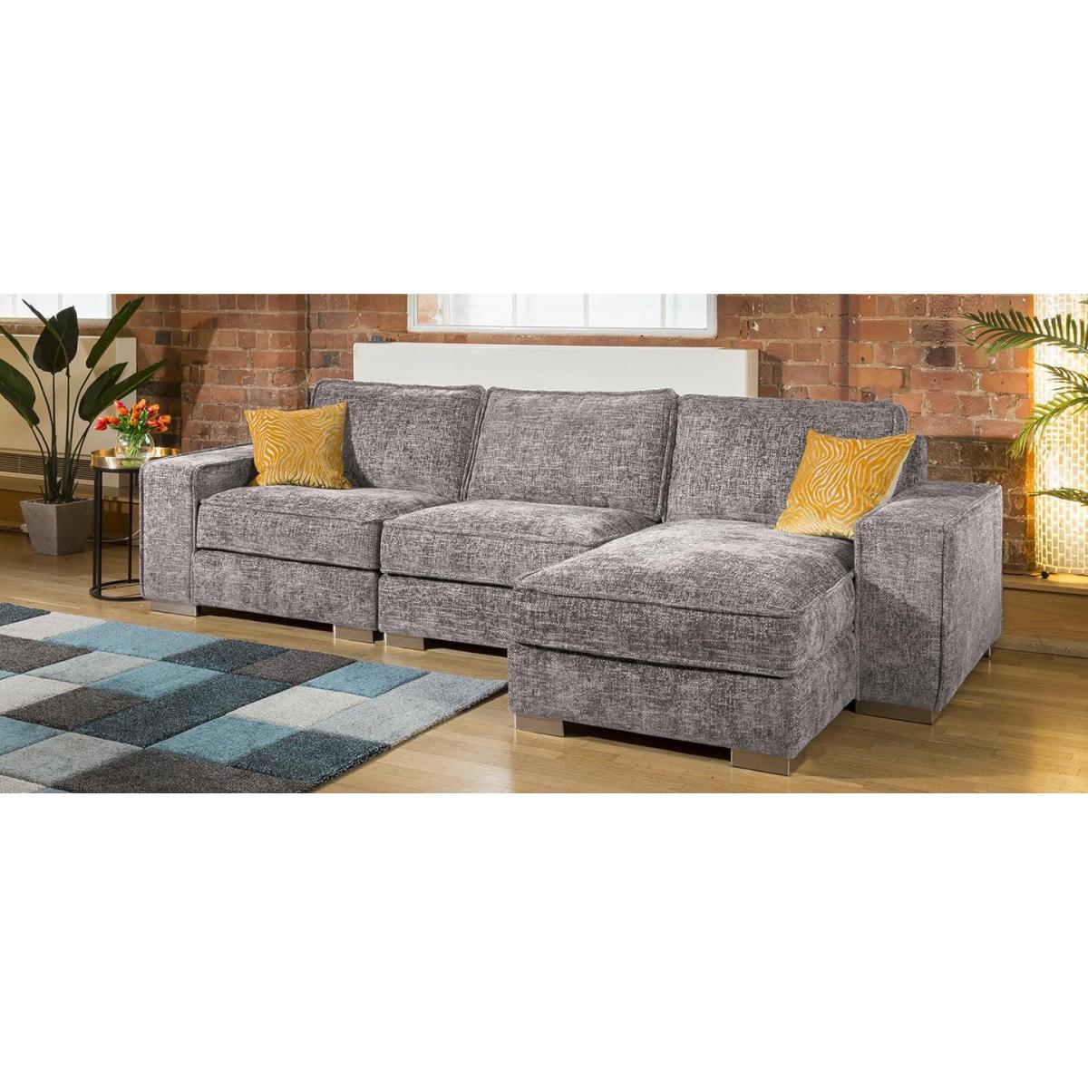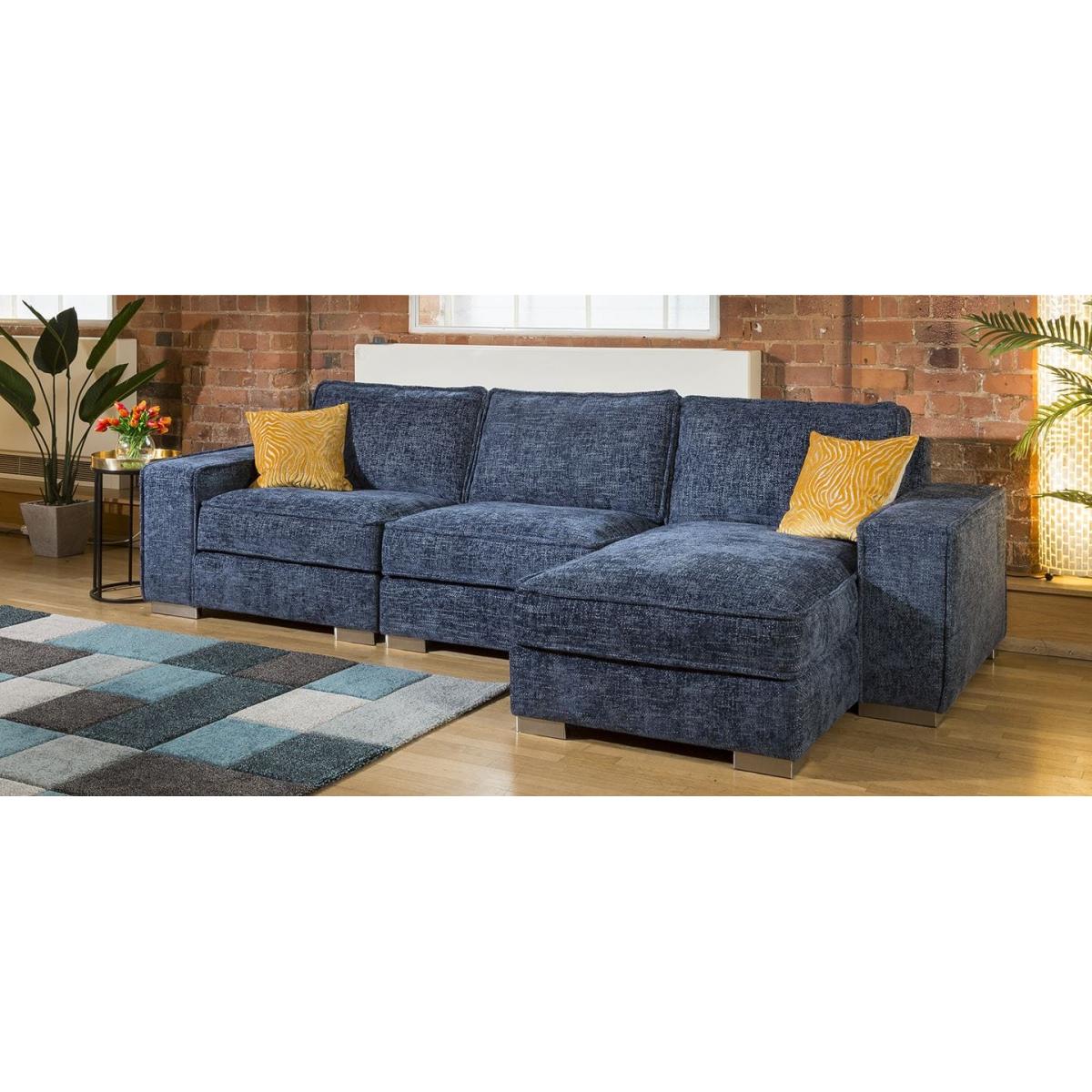 The stunning Lexci 3 seater couch with chaise is unique to Quatropi. The contemporary sofa can comfortably seat 3 person and would look perfect in any lounge or cinema room. The Lexci 1. R settee is a great addition to the Lexci range and would be complemented by one of the matching Lexci armchair. This sofa is fully customisable with a full range of fabrics & colours to choose from. Beautiful design with soft padded arms, massive corner and U shaped sofa options and two different sizes of footstools. The Lexci range includes large back pillow cushions that doesn't only provide a stunning look, they also give versatility to ensure your comfort whatever your size or seating position. All pieces are superb quality with exceptional attention to detail especially the French stitched seams. Some of the great features of the Lexci range include oversize sections including corners, middle sections, footstools and Chaise ends, striking brushed stainless feet, thick French seams and soft back cushions give a completely unique contemporary look. Built with pillow soft hollow-fibre and high density foam cushion fillings, plump the back cushions occasionally to keep them looking fabulous. The Lexci range is completely modular so you can add and take away pieces as you need. Let our experts help you find the exact size and shape to fit your space perfectly. W298cm D155cm H83cm Soft Sit Cushions All dimensions are approximate due to fabric differences. Please allow tolerance of +/- 5cm to any direction