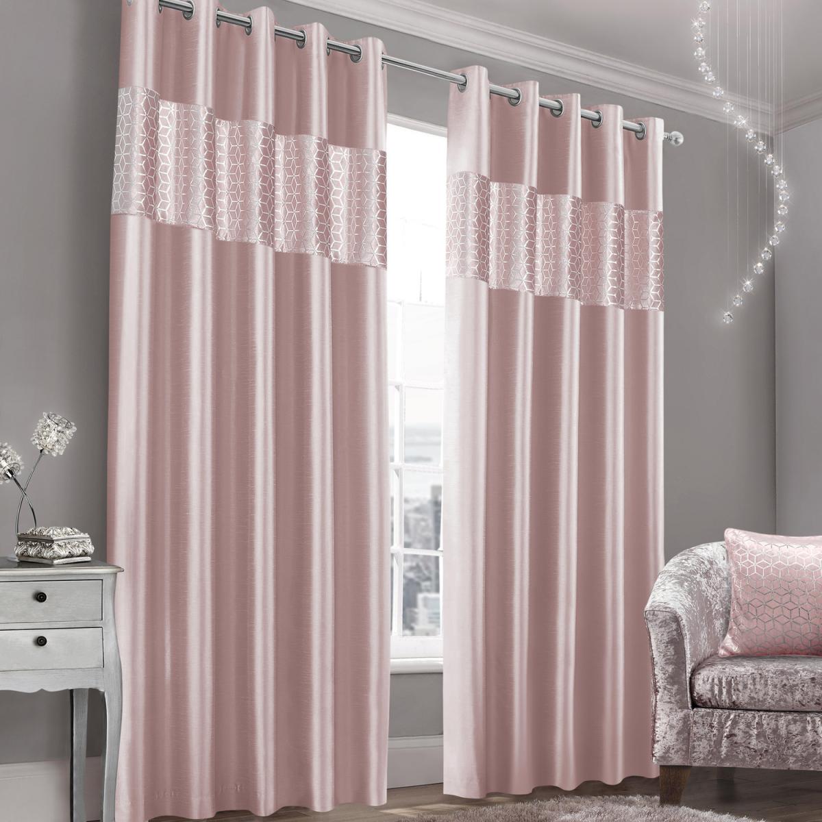 Luxury Metallic Geometric Foil Pattern Curtain Pair - Blush / 2.18kg