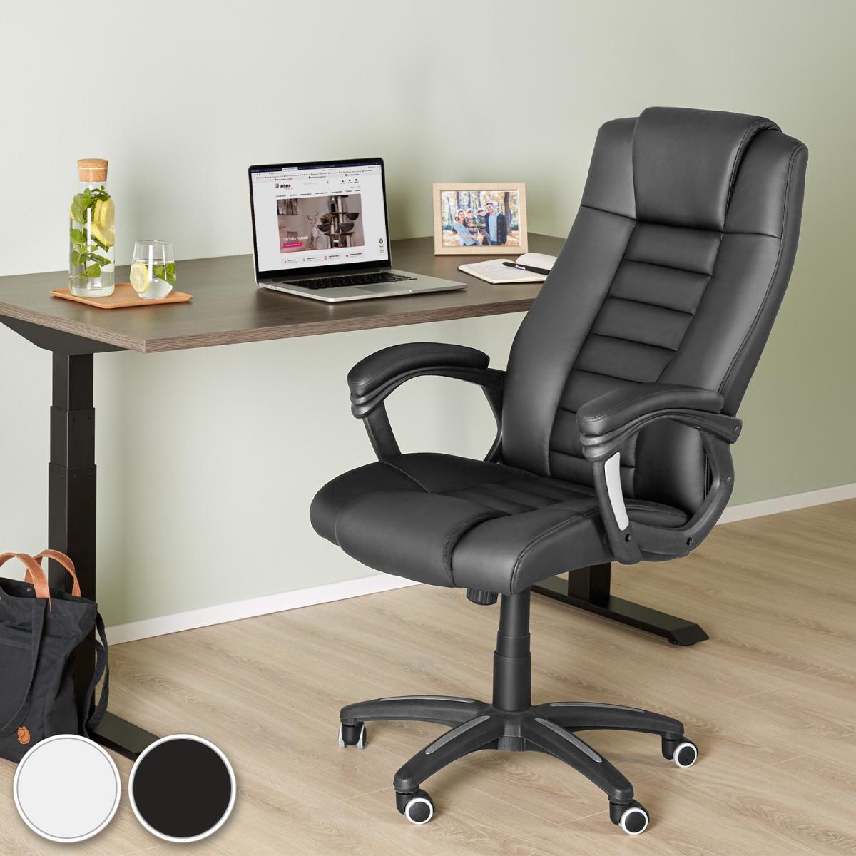 This office chair by tectake will fit seamlessly alongside pre-existing furniture and create a comfortable working environment. The swivel chair offers extra-thick padding (up to 12 cm) for soft and comfortable sitting. The high quality and density of the cushioning of this chair ensures a long service life. Thanks to the chairs ergonomically shaped seat and backrest, and reinforced and padded headrest, optimal seated comfort is obtained. The executive chair features seamless height adjustment, meaning it can be perfectly adjusted to your body size and the desk surface. The safety star shaped base of the chair offers great stability on 5 double wheels. The office chair comes with a seamlessly adjustable tilt mechanism which can be set to your body weight. Whether in a home office, at your workplace or in a game room, this luxury office chair by tectake will provide you with a comfortable place to complete your tasks.