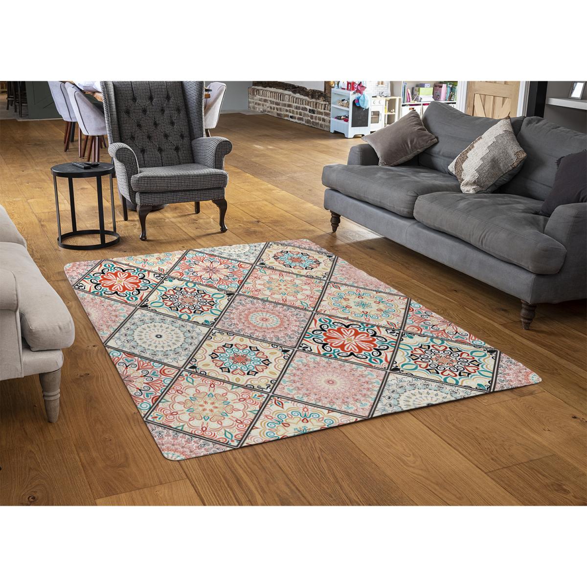 I love this pink Oriental rug for adding a vibrant focal point to a variety of interiors. Its lively colours and intricate pattern work well in both modern and traditional spaces, offering a touch of exotic elegance without overwhelming the room. It’s perfect in a cosy bedroom scheme, especially when paired with neutral walls and soft linens, or as a statement piece in a living room that needs a pop of colour and pattern. Practical styling tips include layering it over a larger neutral carpet or flooring for added depth, and keeping furniture low-profile to let the rug shine. Overall, it’s a versatile piece that injects personality and warmth into any space.