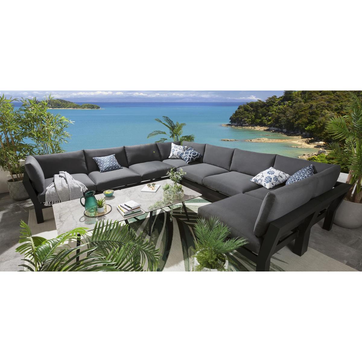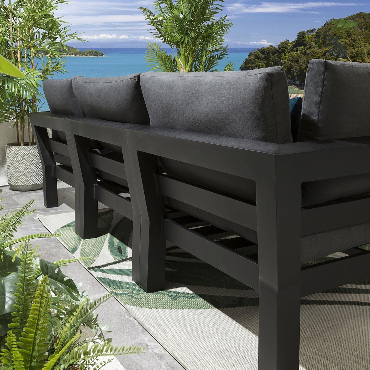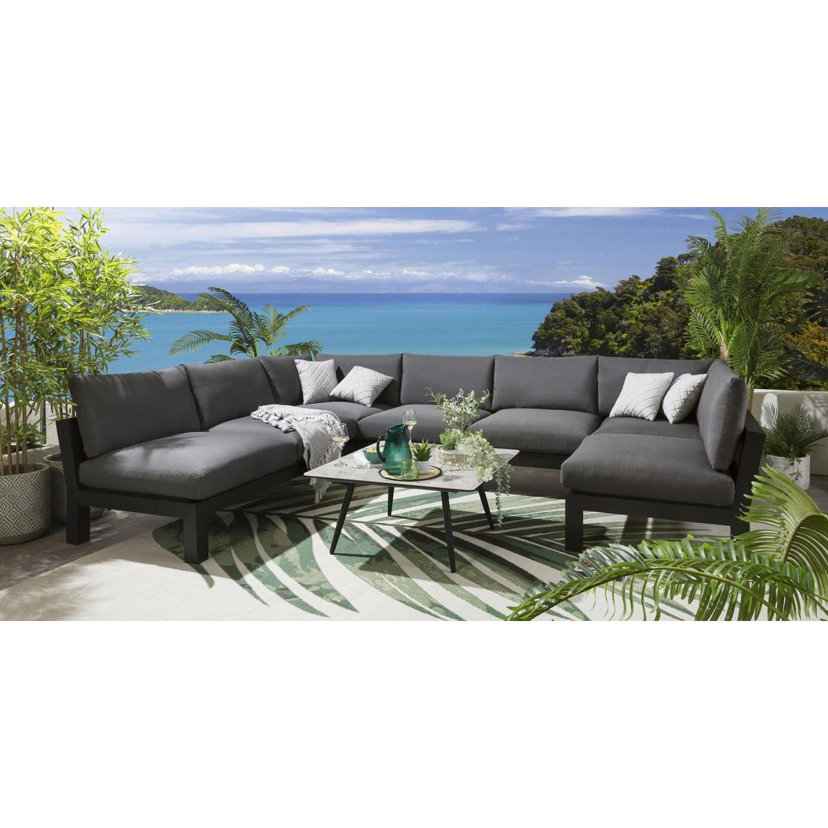 The Quatropi Zara Extra Large Garden Modular Sofa Range is the perfect choice for bringing style, comfort and luxury to your outdoor space. Featuring huge, deep, soft cushions that provide unrivaled levels of comfort, this range is designed to provide maximum comfort and relaxation. The oversized aluminum frame ensures durability and stability, while the cushions along with winter covers offer further protection from the elements. With many sectional pieces enabling customers to design the ideal shape and size sofa for their patio, this range provides the perfect solution to creating a beautiful outdoor living space. Whether you're entertaining friends and family, or just simply want to relax outdoors, the Quatropi Zara Extra Large Garden Modular Sofa Range is the perfect choice. Spread the cost our with interest-free finance options. Minimum spend applies. W164cm D93cm H91cm Includes 1 x 2 seater middle section in charcoal Modular design