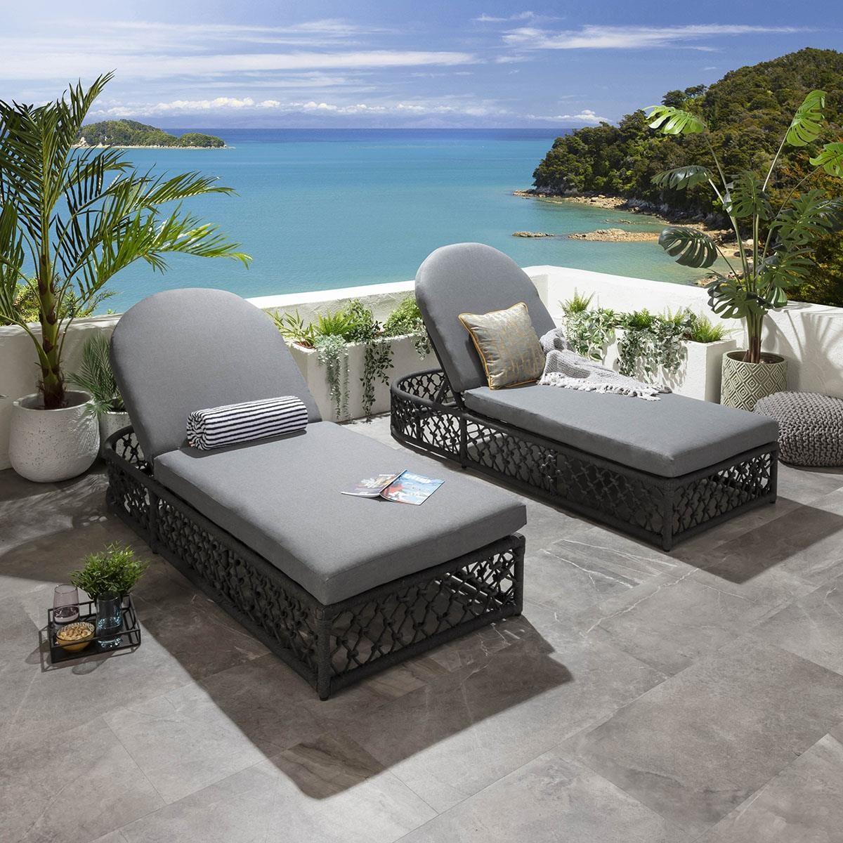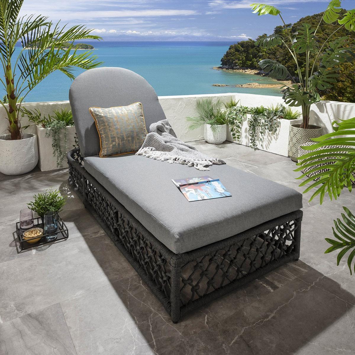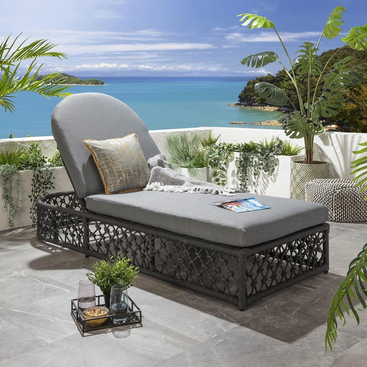 Our premium Amelia garden sun lounger seamlessly blends comfort and style. This outdoor lounger is the embodiment of contemporary relaxation with its artisanal knotted rope design and sleek grey aesthetic. It's built on a weather resistant aluminium frame and arrives fully assembled, ensuring years of enjoyment. Crafted with precision, the aluminium frame of the Amelia sun lounger is exquisitely covered in a knotted rope design, adding a touch of sophistication to your outdoor space. From sunbathing to enjoying a good read, the adjustable backrest can be set at multiple angles, ensuring a truly indulgent experience. Sink into pure luxury with the thick, sumptuous base cushion upholstered in grey fabric. This garden lounger cushion invites you to unwind in ultimate comfort, making it an ideal addition to your outdoor oasis. Experience convenience like never before the Amelia luxury sun lounger requires no assembly, allowing you to enjoy its charm right away. Elevate your outdoor living with our premium furniture collection; pair this garden lounger with our matching garden furniture to create a cohesive and stylish ensemble. W199cm D77cm H27cm Seat Height 37cm Luxury Sun Lounger