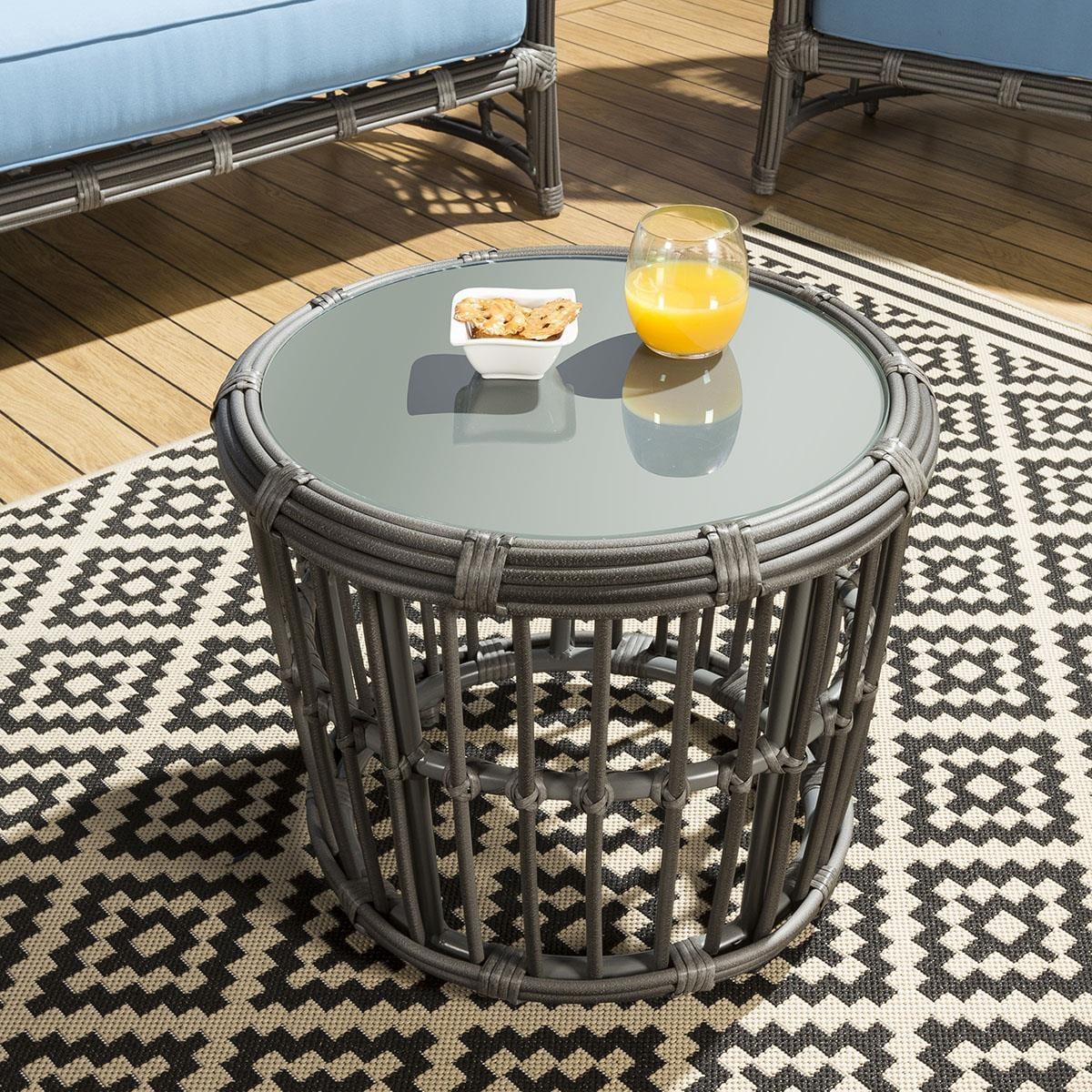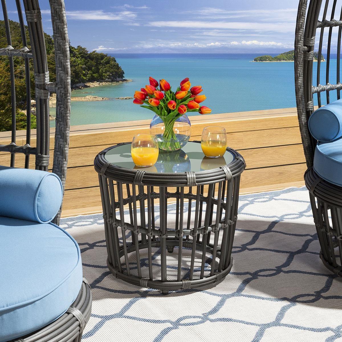 Luxury Outdoor Garden Patio Beach Club End Table Grey Glass