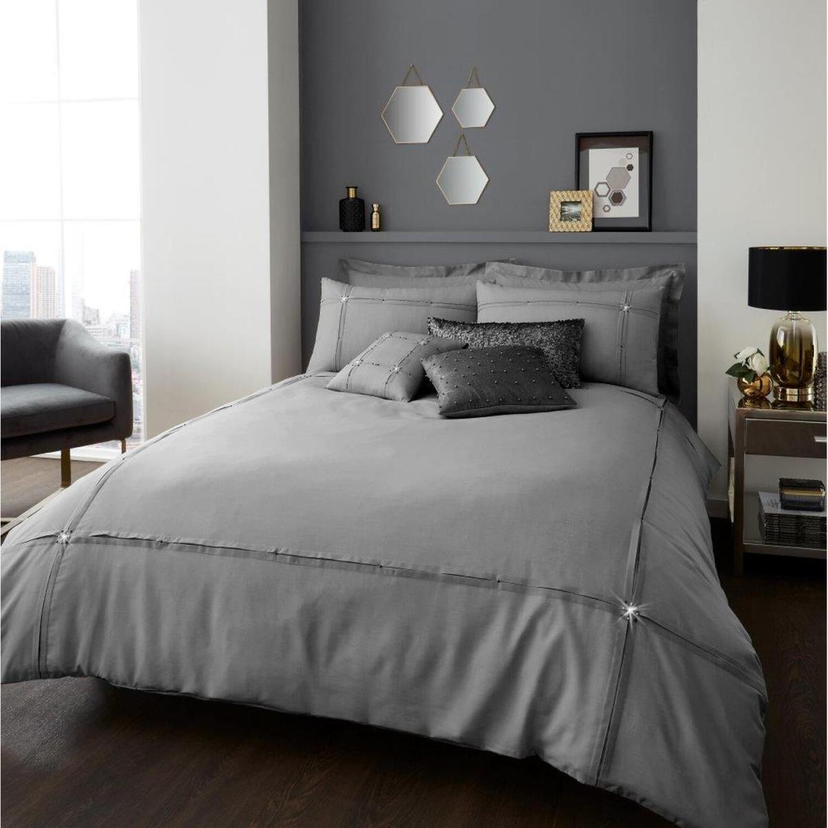 This bedding set is perfect for creating a sophisticated, calm atmosphere in a contemporary or minimalist bedroom. I love the sleek silver tone, which pairs well with cool colour palettes or metallic accents for a modern look. It’s versatile enough to sit effortlessly in both monochrome interiors and those with subtle hints of colour. Practical styling tips include keeping surrounding accessories simple-think streamlined bedside tables and understated decor-to let the luxury fabric and subtle sheen stand out. Layer with textured cushions and add a plush throw for a cosy yet polished finish, making this set an excellent choice for achieving a refined, put-together space.