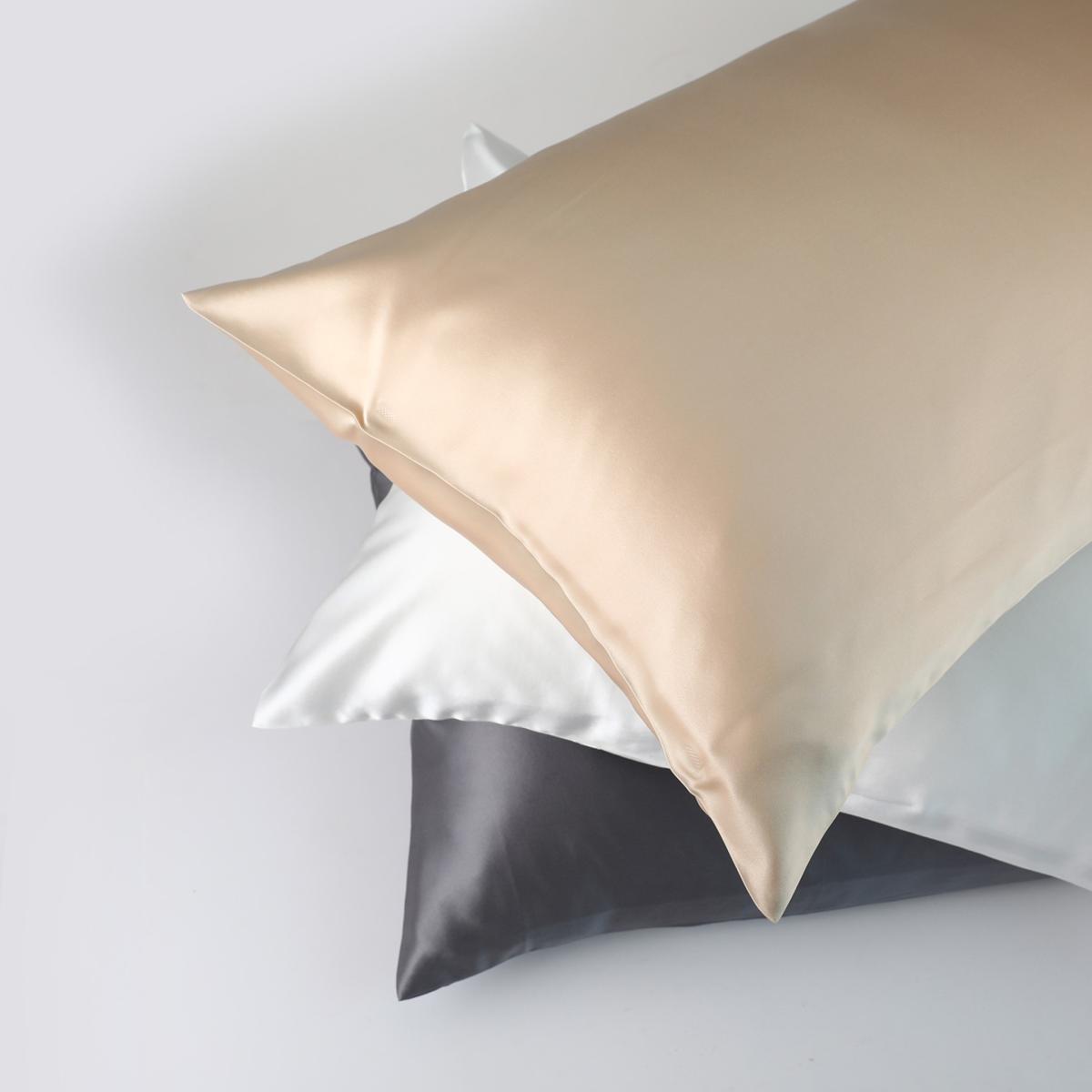 A delicious, opulent collection, made to impress those who love silk. We've sourced 100% mulberry silk 30 momme and above for this collection. A 22 momme silk is already considered luxurious by industry standards. However, 32 momme is a different story. The feel is soft, dense, and buttery. When you hold it in your hands, you will be surprised to feel the weight of a single pillowcase. It will drape down fluidly from your hand, like a flowy evening dress. Designed in Toronto. Material 100% natural mulberry silk 32 momme silk charmeuse Grade 6. A (highest grade) Non-toxic dyes