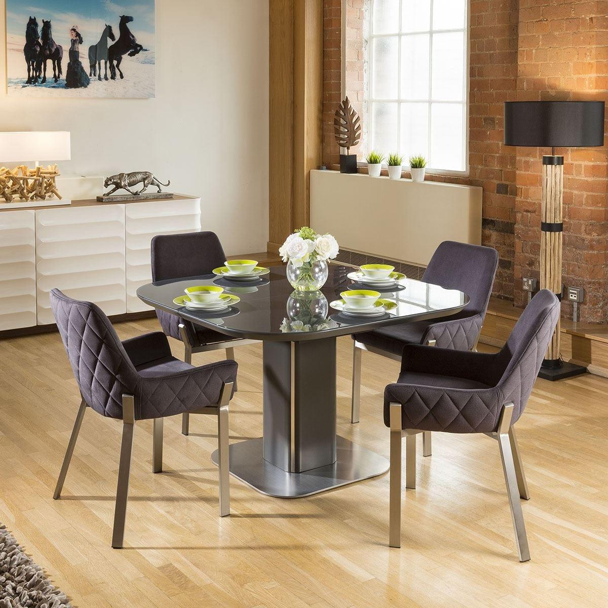 Luxury Quatropi Modern Extending Square Dining Table Grey Glass 120cm
