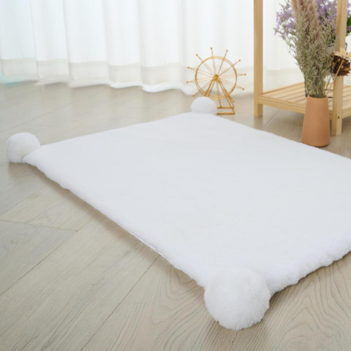 Give a touch of elegance to your decor with this Luxury Rabbit Fur Pom Rug. Finished in classic colours, it features a thick 1300gsm face pile with a super soft texture that imitates rabbit fur and small pom poms on corners. Complete with anti-slip backing for safety, it's perfect to elevate the style and comfort of your decor.