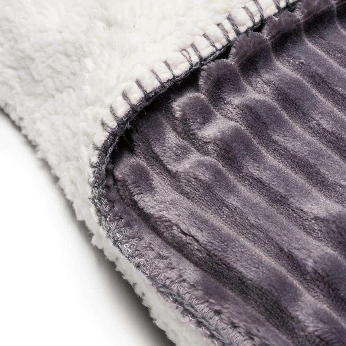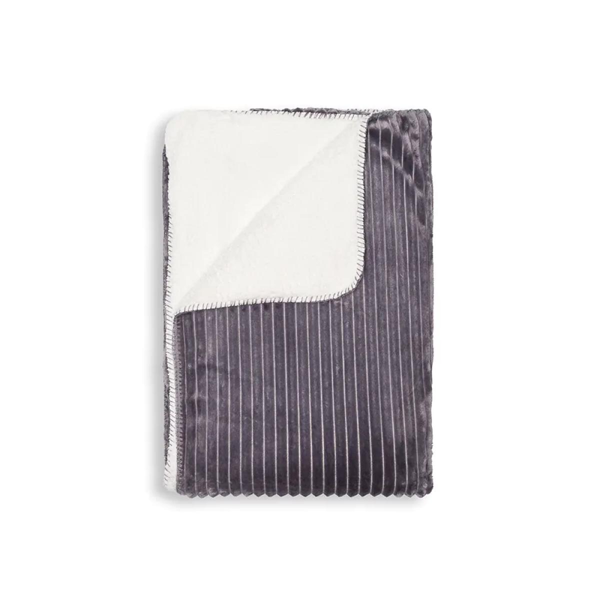 Luxury Ribbon Velvet Throw with Sherpa, Grey
