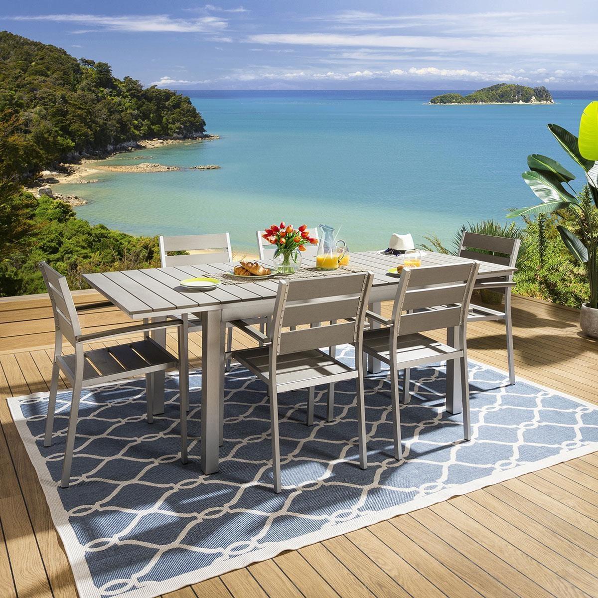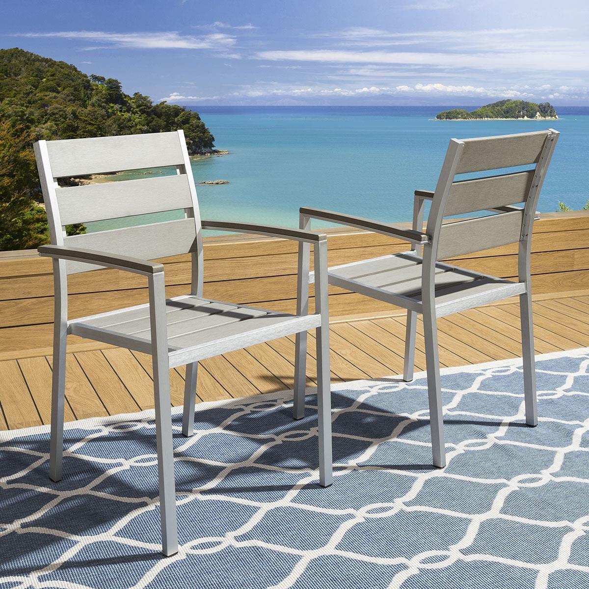 Stunning commercial quality outdoor maintenance free dining chairs. Made from brushed aluminium and polywood. The frames are made entirely from aluminium with a brushed finish. With no painting or other coating to hide any issues, this exposed aluminium look it extremely hard to achieve and requires very specialist craftsmen and equipment. The look this achieves is simply stunning and oozes class and style. The arms seat slats are made from polywood which is will stay looking great after many years and is super-easy to clean. Spread the cost our with interest-free finance options. Minimum spend applies. W54cm D57cm H88cm Modern Garden Furniture Premium Quality Furniture