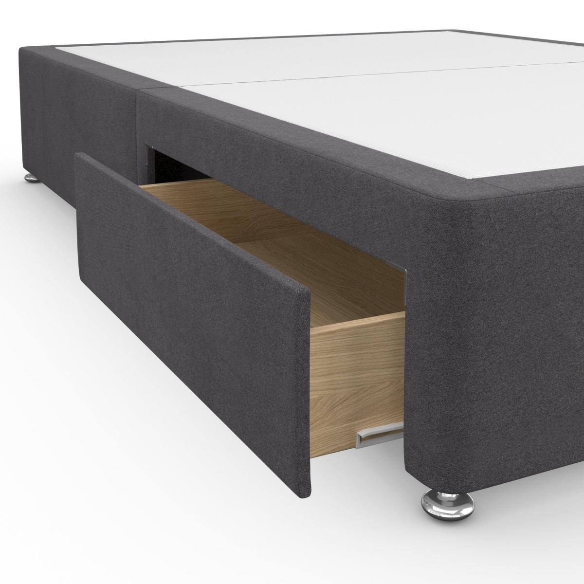 * High quality timber construction* Luxury platform top base for added support* Padded fabric covering* Extra reinforced divan base* Suitable for any headboard type* Supports all types of mattresses* Choice of fabric colours* Various drawer options available* Made in the UK* **Please note**: Headboard is not included. For the ultimate style and storage solution for your bedroom, look no further than the Luxury Platform Top Divan Bed Base. The Luxury Platform Top Divan Base is constructed from high quality timber, provides excellent support for all types of mattresses with chrome glider feet adding a beautiful finishing touch. Upholstered in a range of high quality fabric colours designed to coordinate with your bedroom. Available with an excellent choice of drawer storage options, making it a great space saving solution for any bedroom. Please note: The headboard and mattress are not included.