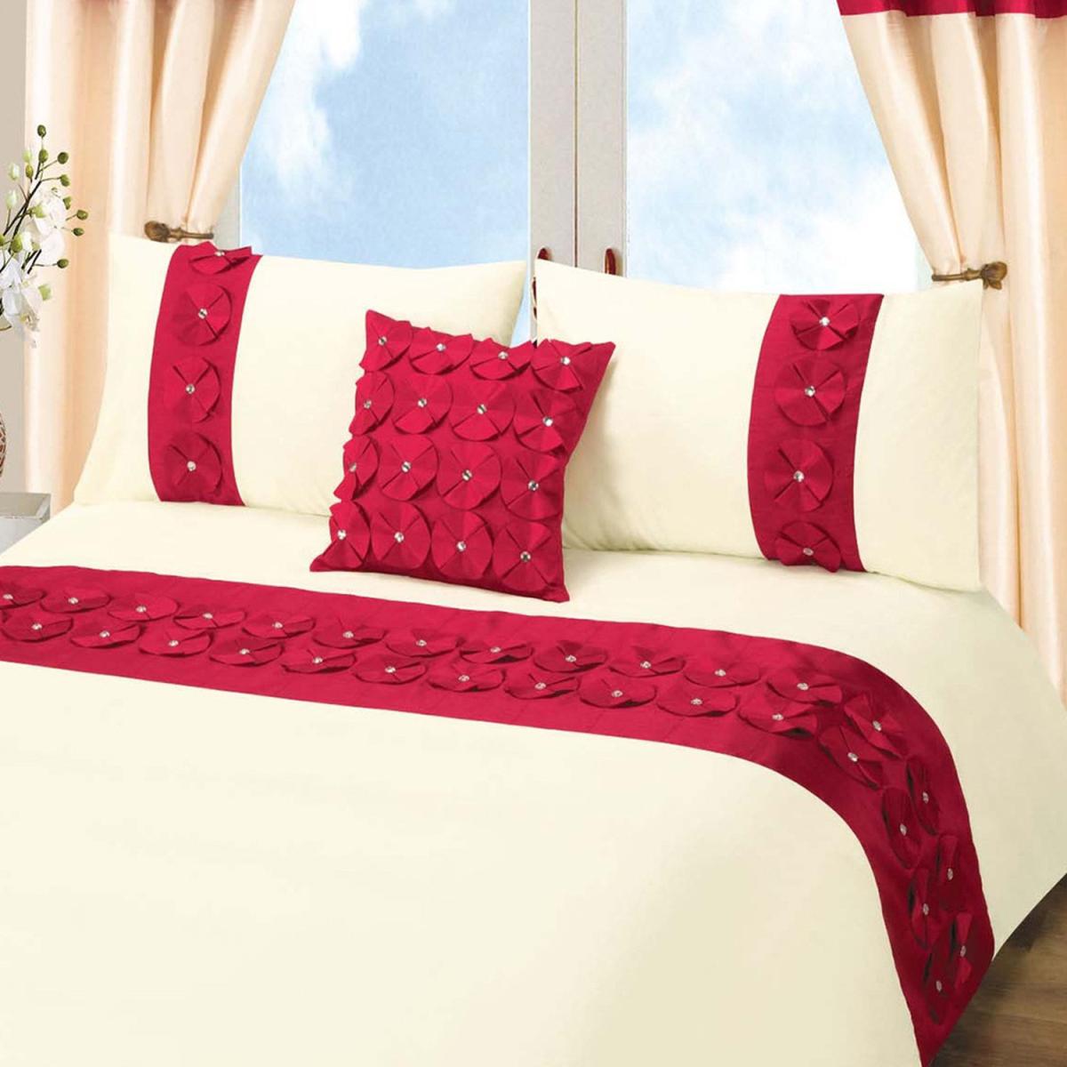 Luxury Vogue Diamante Floral Duvet Cover and Pillowcase Set - Red