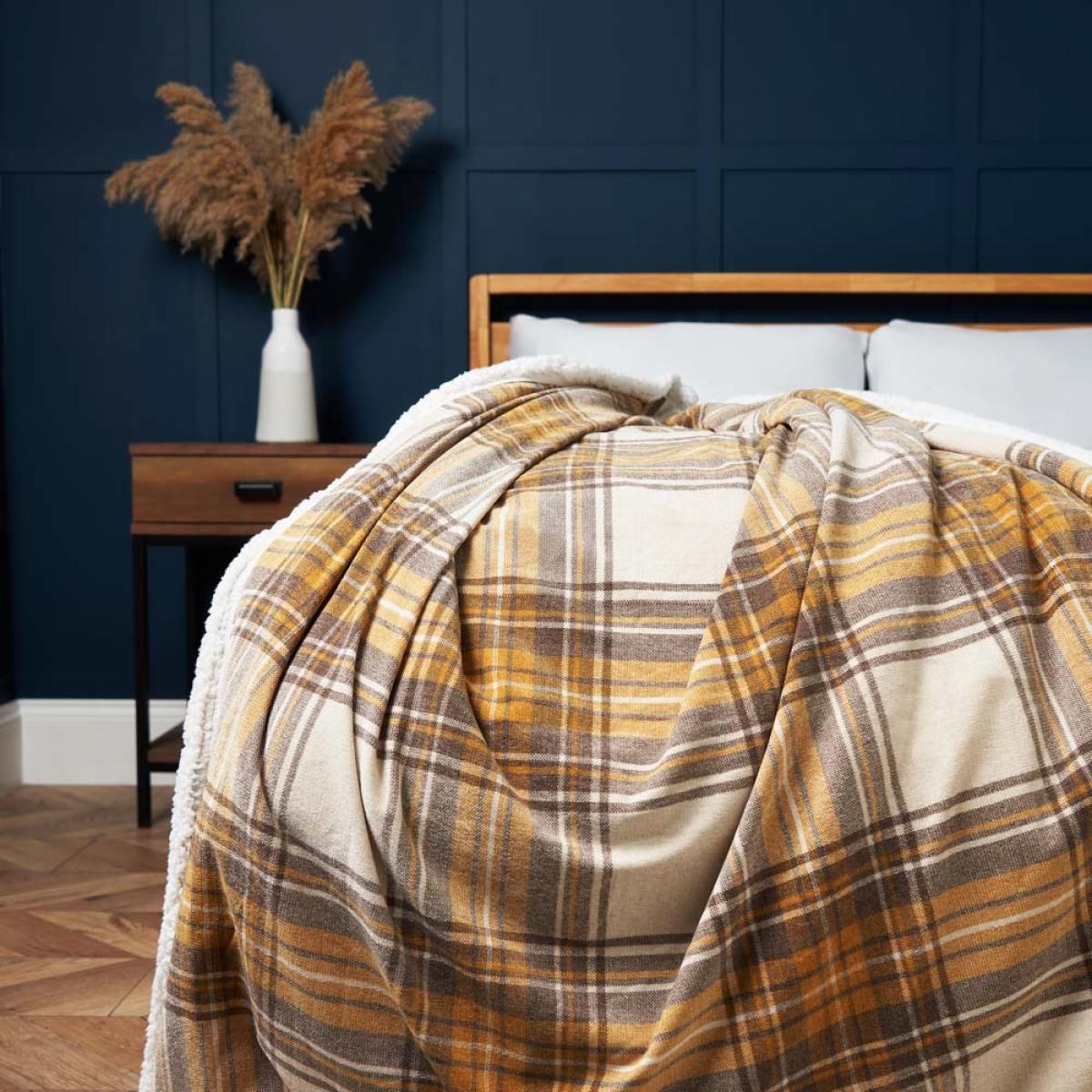 I love this warm check throw with Sherpa for its cosy texture and versatile colour. The ochre tone adds a warm, inviting touch that works well in both rustic and modern interiors. It's ideal for draping over a sofa or bed to introduce a layer of colour and comfort, especially in neutral or earthy schemes. Practical styling tips include folding it neatly at the foot of a bed or casually layering it over a armchair to create a relaxed, lived-in look. Its plush Sherpa lining makes it perfect for chilly evenings, providing both style and function in a variety of living spaces.