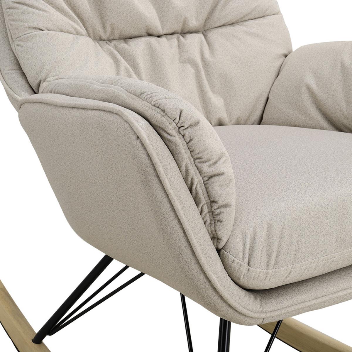 Live a life of luxury with this Livingandhome rocking chair that gives you everything from incredible textures to exquisite style. Characterized by a gentle silhouette with a wide seat and flared arms, this rocking chair suits any modern or traditional interior. It is covered in a soft and luxurious upholstery, and is filled with plush sponge to keep you comfortable for hours. Supported by a strong metal frame and wooden runners, you can rock smoothly to spend your Sunday afternoons.