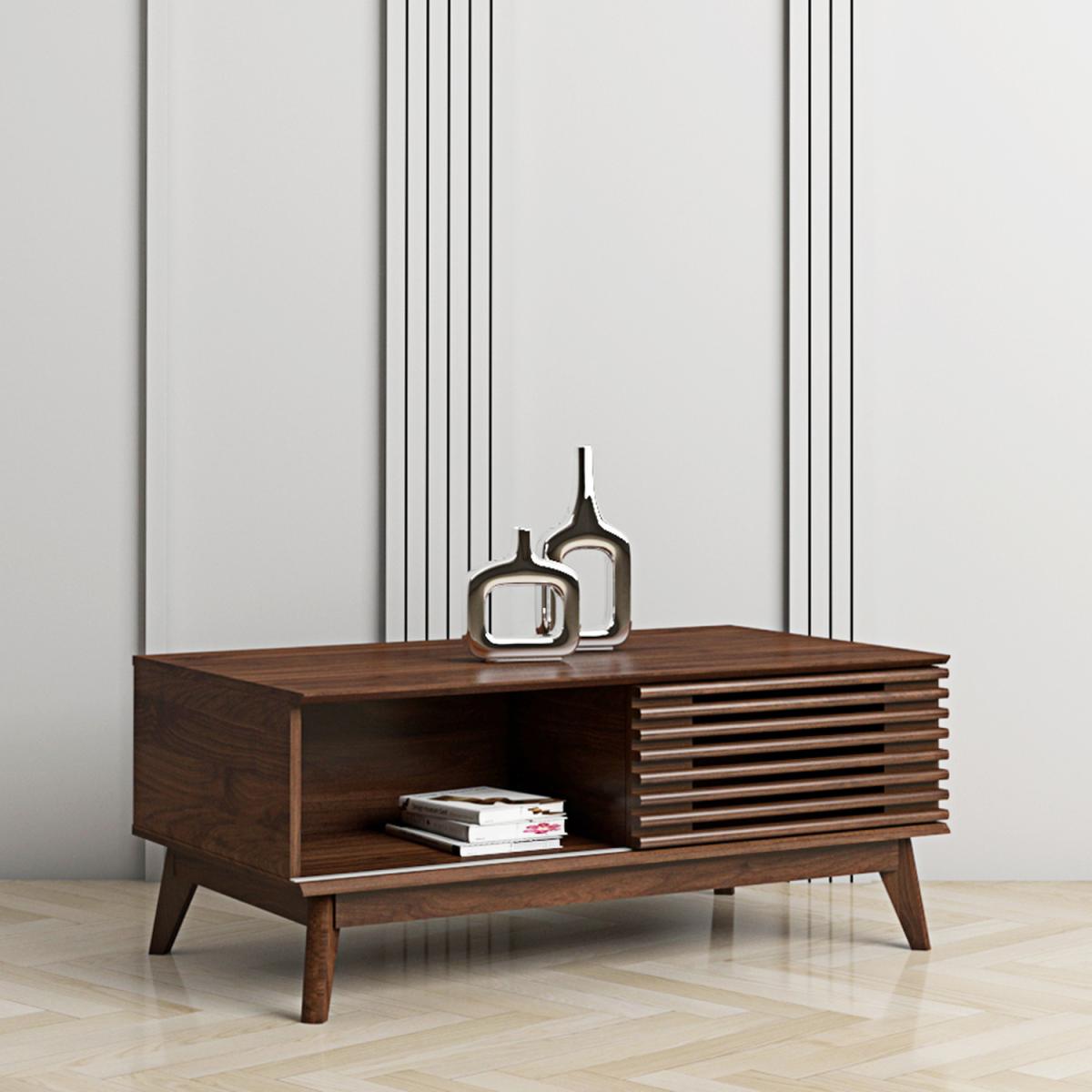 The LV41 Range is one of charm. This exquisite set is meticulously crafted, providing a seamless update to your home decor. It's minimalist yet vintage all in one. The darker Colombian walnut colour combines sophistication and grandeur. The LV41 Coffee Table seamlessly merges an organic aesthetic with the functionality of a sliding slatted door, creating a harmonious blend of style and utility.