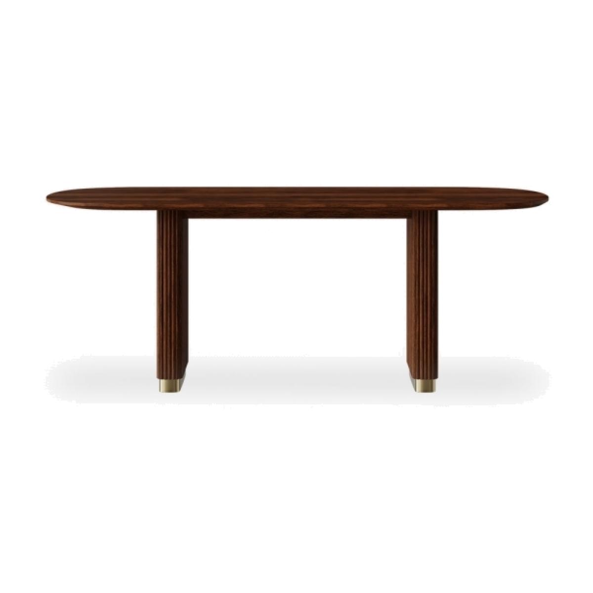 Luxe design, modern accents, and bang-on-trend, that's the Lydford collection. This dining table sits up to 6 people with plenty of legroom thanks to the sleek outline. Made from a solid mango wood base with a soft detailed ribbed design and stylish brass accents around the bottom, topped off with a smooth oval-shaped top in a walnut stain finish. The Lydford Range is made from highly sustainable mango wood and natural material, marble. Both materials are highly durable and part of our Cult Eco Edit. View The Lydford Range Table Top Material: Mango Wood Leg Material: Mango Wood No. of Seats: 8 People Assembly: Partial Assembly Required Download Assembly Instructions Care: Wipe clean with a dry cloth Dimensions Total Size: H 76 x W 200 x D 90cm Weight: 39kg Packing Dimensions: 207 x 17 x 93cm. Buy your Lydford Oval 6 Seat Dining Table, Walnut from a wide range of Furniture, Tables, Kitchen & Dining Room Tables
