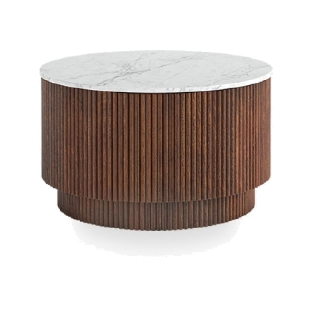 Luxe design, modern accents, and bang-on-trend, that's the Lydford collection. This coffee table has a seamless contemporary design that will elevate any interior. We love the soft ribbed detailing and indented base with the walnut-stained mango wood to give the Lydford coffee table a contemporary feel against the solid marble top. With sleek hidden cupboard to hide away any living room clutter, this is the ultimate contemporary piece! The Lydford Range is made from highly sustainable mango wood and natural material, marble. Both materials are highly durable and part of our Cult Eco Edit. View The Lydford Range Table Top Material: Marble Leg Material: Mango Wood Additional Features: Storage within table Assembly: No Assembly Required Care: Wipe clean with a dry cloth Note: Each piece of marble furniture will vary in texture, pattern, colour and veining. All these differences are part of what makes this material unique and beautiful. Dimensions Total Size: H 45 x W 80 x D 80cm Weight: 46kg Packing Dimensions: 86 x 86 x 53cm. Buy your Lydford Storage Coffee Table, White Marble & Walnut from a wide range of Furniture, Tables, Accent Tables, Coffee Tables