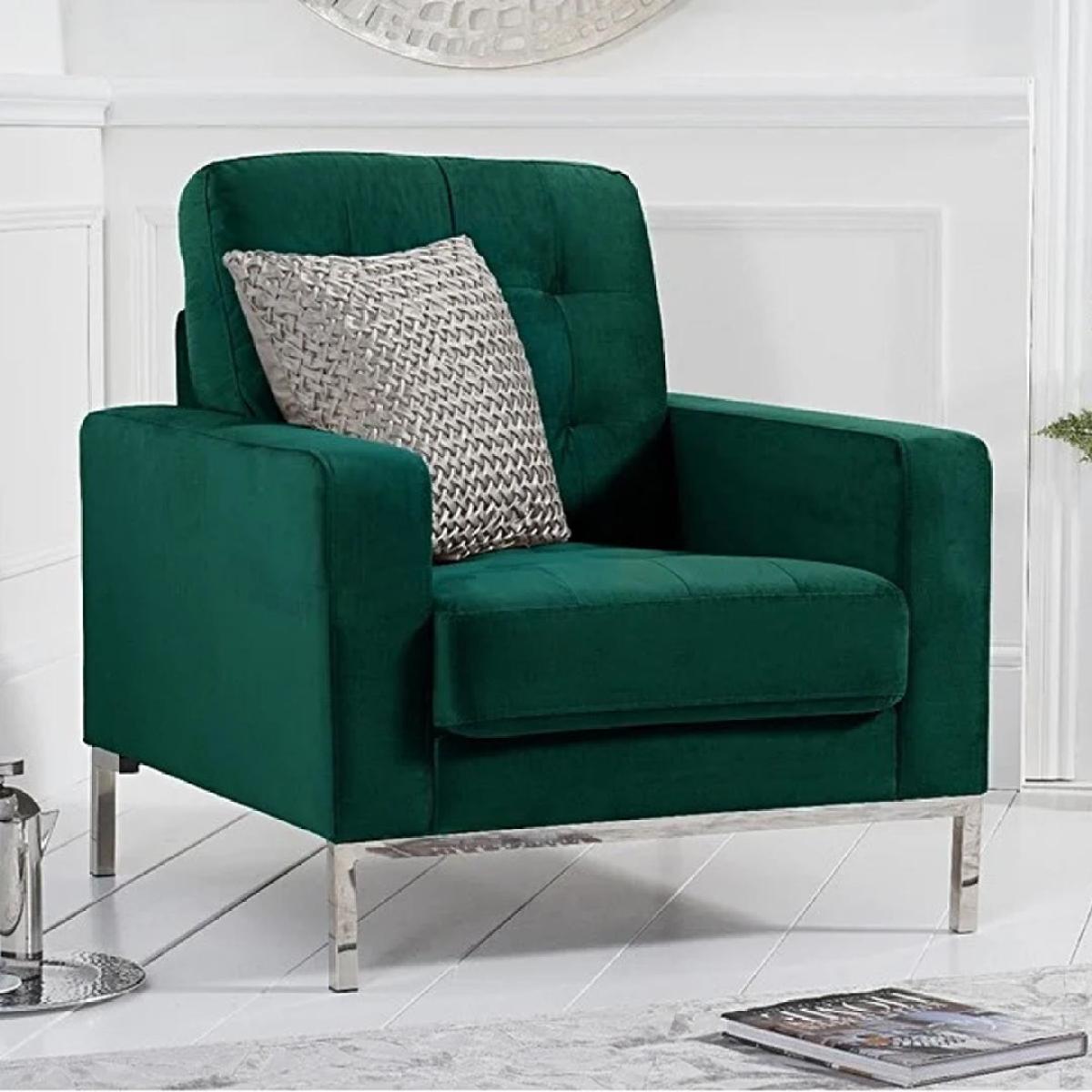 The green velvet armchair is a fantastic statement piece that works well in both modern and classic interiors. I love its rich colour and luxurious texture, which can instantly elevate a space. It’s versatile enough to pair with neutral palettes for a sophisticated look or combined with patterned cushions and throws for a more eclectic feel. Practical styling tips include adding a statement cushion or a cosy throw to soften its appearance, and positioning it near a statement lamp or side table to maximise its inviting appeal. This armchair works especially well in living rooms, reading nooks, or even a bedroom corner, adding both comfort and a touch of elegance.