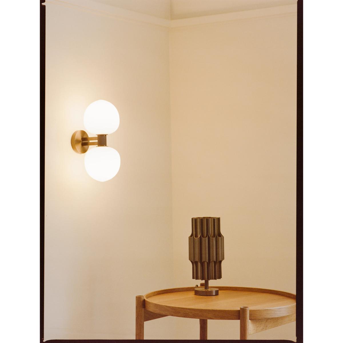 Memoir 120 wall lamp is made of opal glass and metal and is designed by Gam. Fratesi. The lamp has a romantic spirit with a historical typology, but with a sculptural silhouette that fits in modern spaces. The linear metal structure allows connecting several lamps.