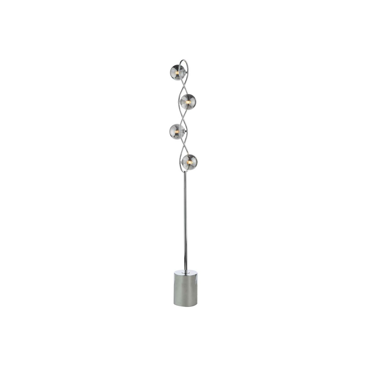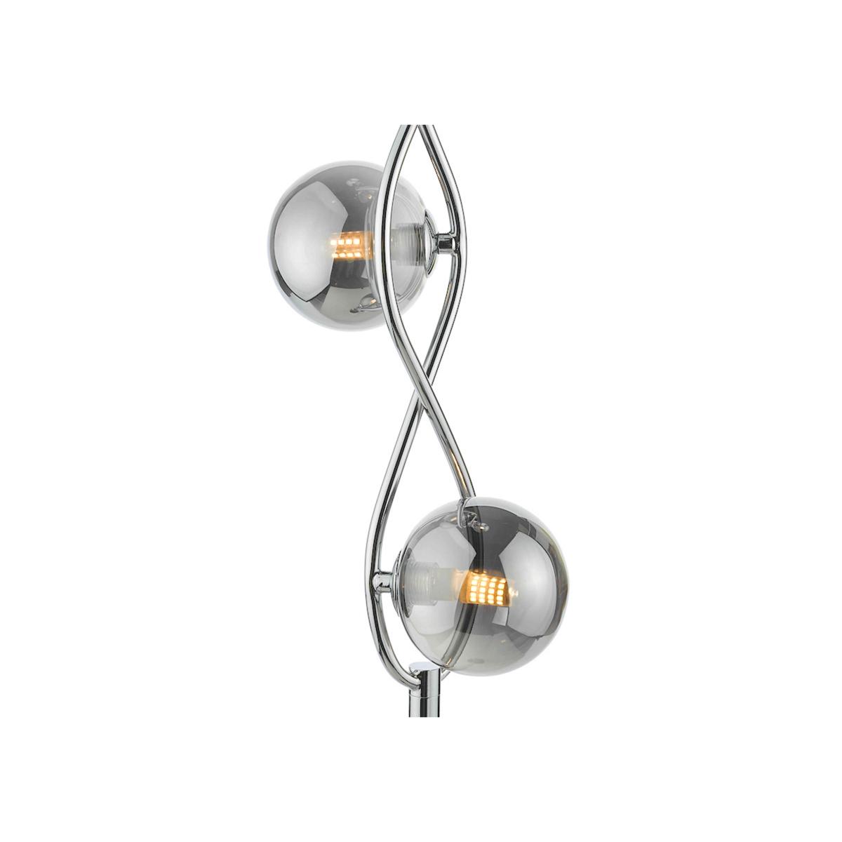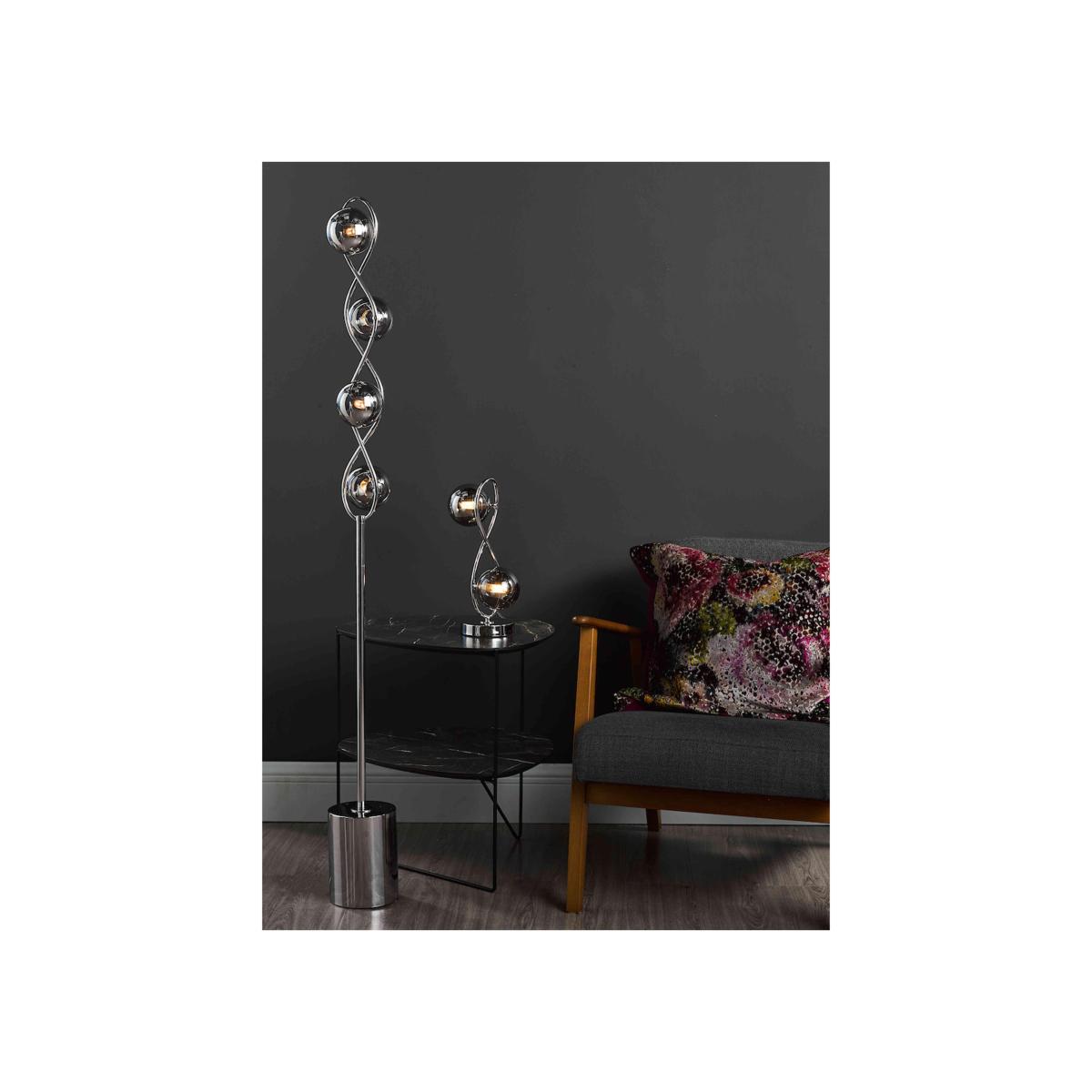 Slender and compact, our Lyla floor lamp makes a quiet impact thanks to its striking infinity symbol-inspired design, polished chrome finish and smoked glass light shades. Why you'll love it Striking modern style. Infinity symbol-inspired curvilinear base has a polished chrome finish. With 4 smoked glass globe-shaped shades. Clear cable. This floor lamp is part of the Furniture Village lighting collection. What you need to know Metal with glass shades. Inline rocker switch. Supplied with 150 cm of cable. Requires 4 x G9 max. 40 W bulbs (not included). Dimensions Height: 151 cm (60 in). Depth: 21 cm (9 in). Width: 21 cm (9 in). Shade dimensions Height: 10 cm (4 in). Diameter: 10 cm (4 in).