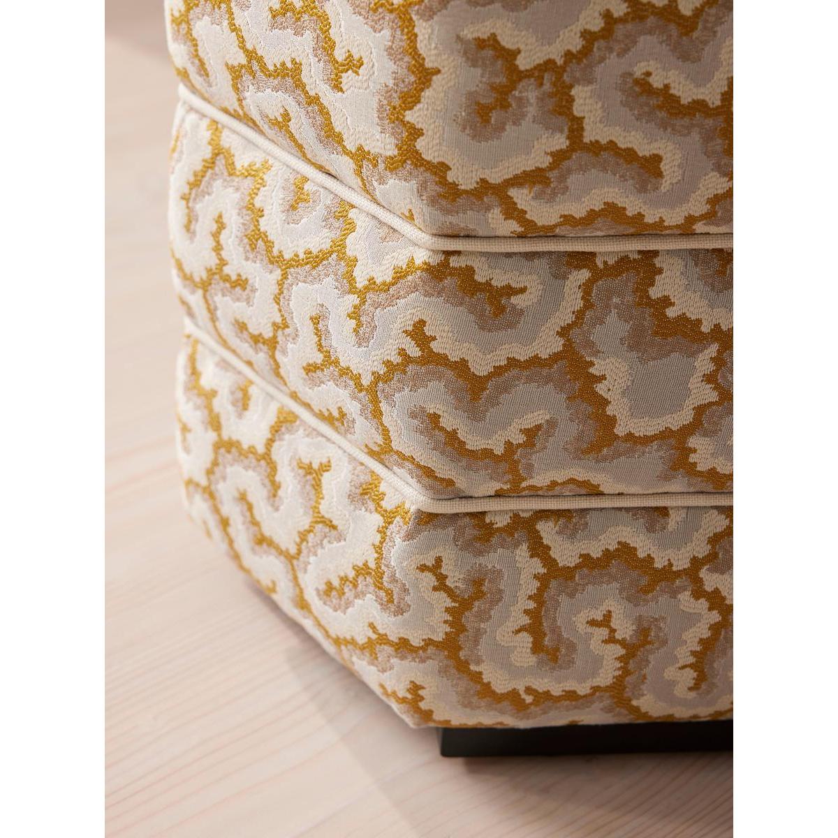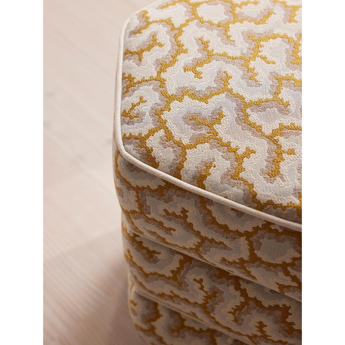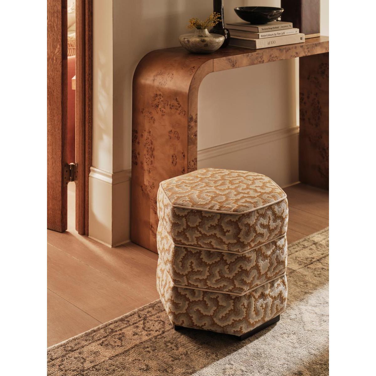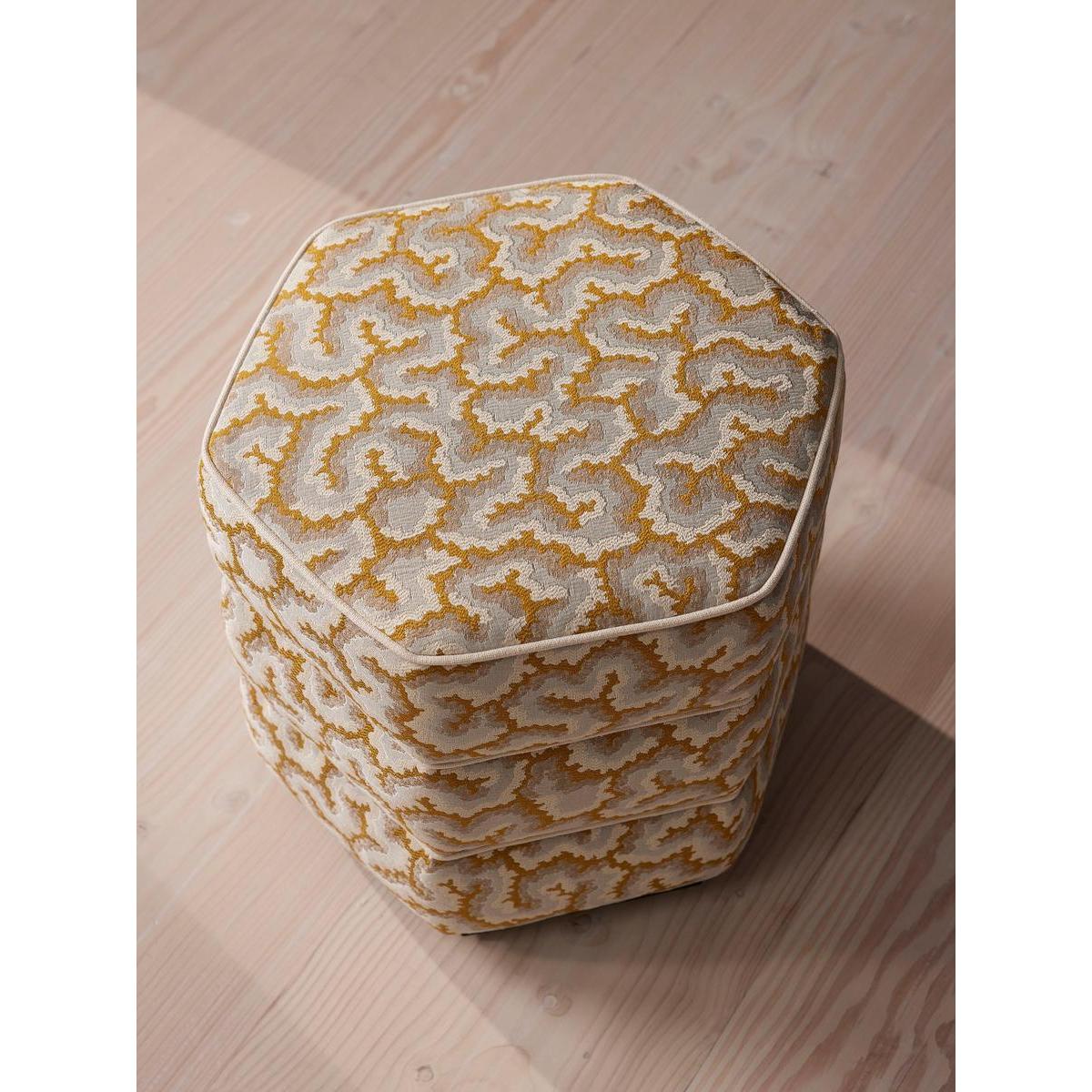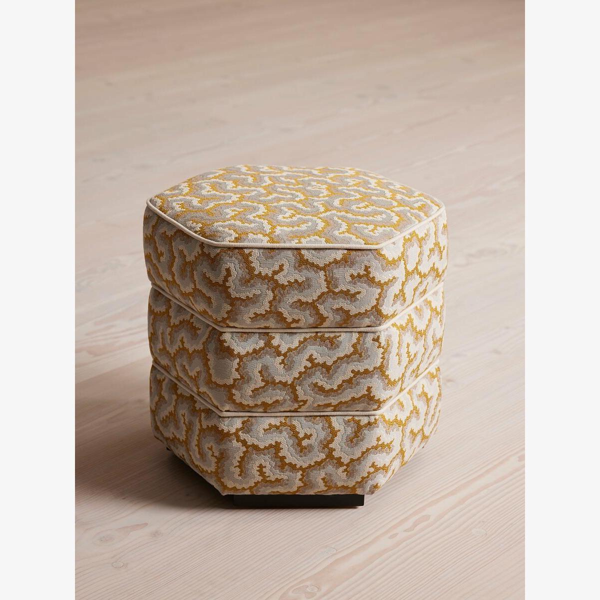 Our Lyla footstool is a subtle way of bringing pattern and a touch of 180 House into your living area. Upholstered in Lophelia jacquard fabric, this unique piece has a hexagonal, stacked design with piping detail to showcase our play on shape and texture. Resting on solid birch legs, partner with any of our armchair designs.