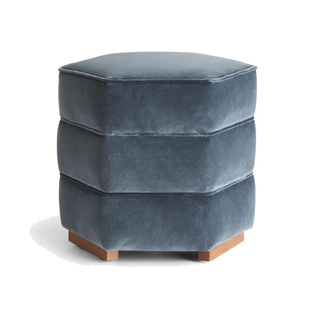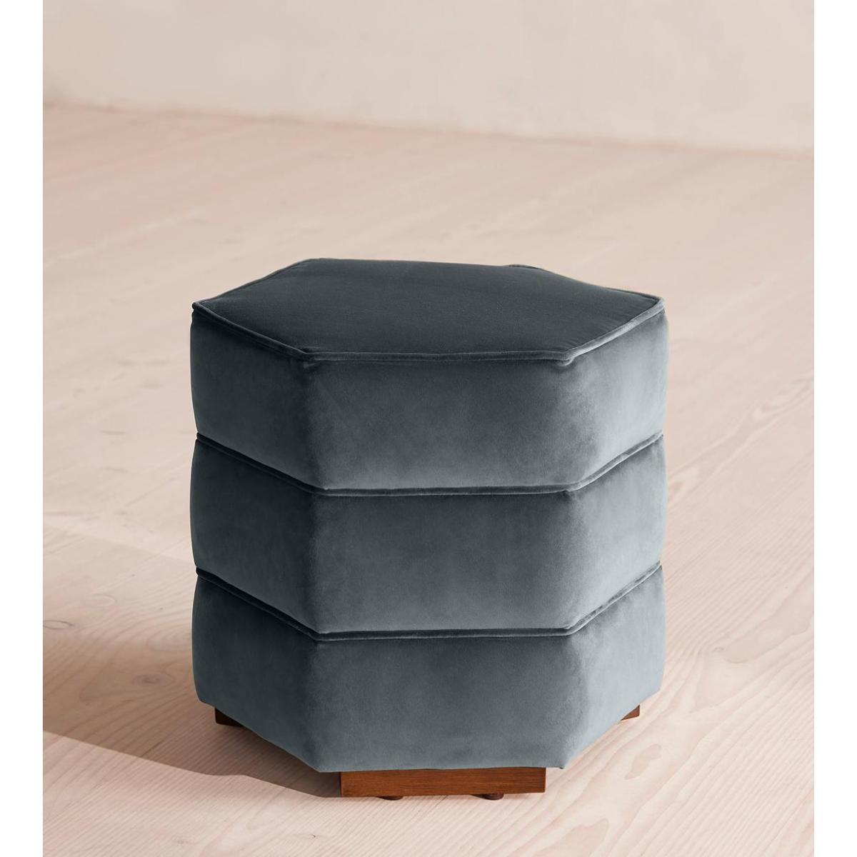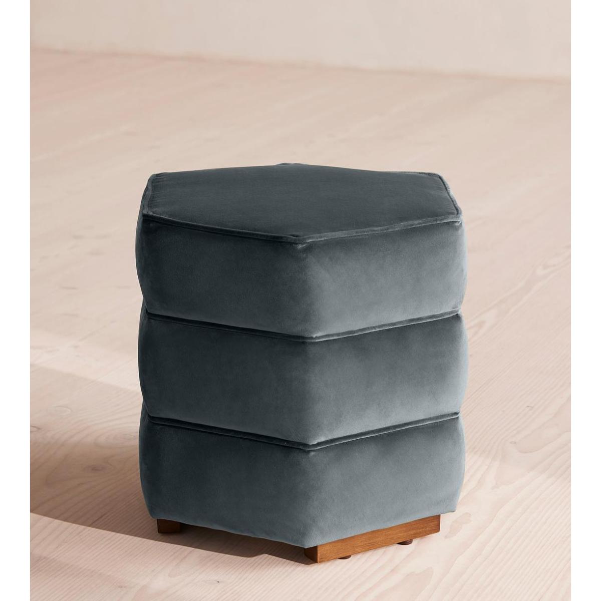 Lyla Footstool, Velvet, Grey Blue