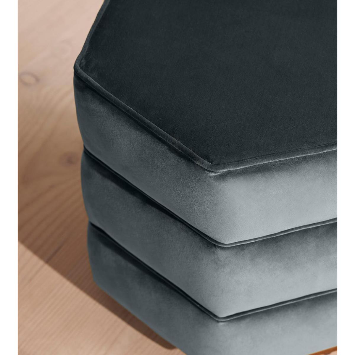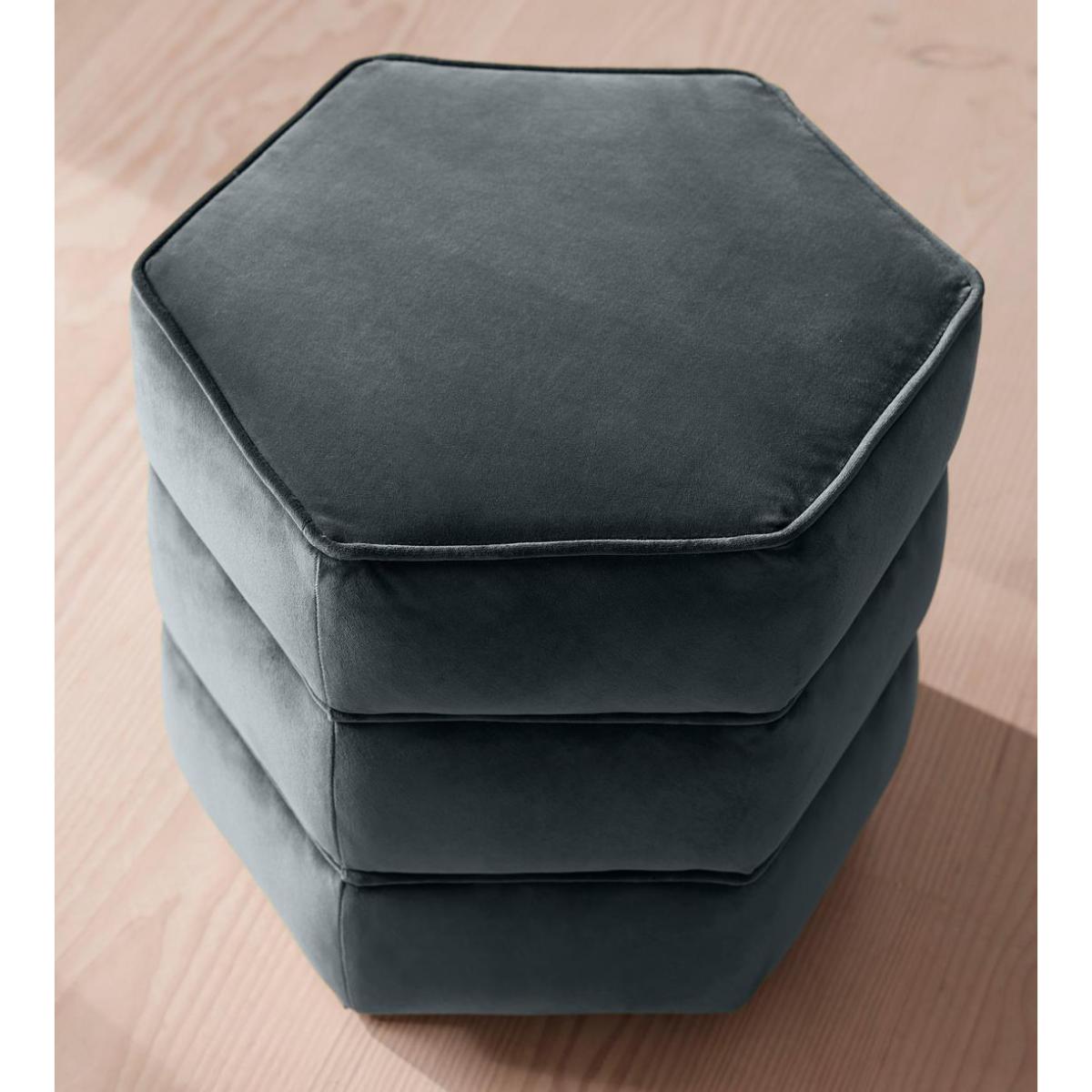 Inspired by the retro interiors of 180 House, our Lyla footstool is fully upholstered in cotton velvet. It features stained solid birch legs and a stacked design with piped edges to accentuate the hexagonal shape. Compact and versatile, the footstool doubles up as extra seating for guests or as a side table with a tray on top. Cotton velvet footstool Piped detail Hexagonal shape Stacked design Stained solid birch legs Fully upholstered Inspired by 180 House