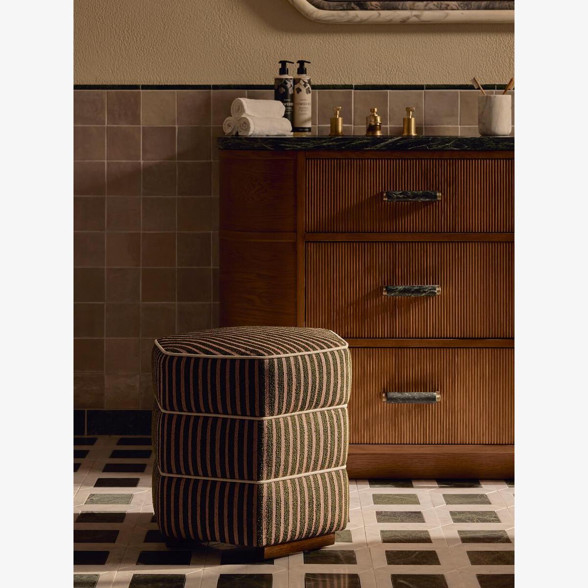 I’m a fan of this striped ottoman for its compact, well-tailored look and neutral palette - it slots effortlessly into modern-traditional, Scandi or country-inspired schemes. The brown and cream stripe adds interest without dominating, making it a subtle focal point. Styling tip: use it as an extra seat beside your favourite armchair or at the end of a bed, then top with a small tray or favourite book to double as a side table. It also works well tucked under a console in an entrance hall, paired with warm woods, textured rugs and a couple of woven cushions for a layered, cosy feel.