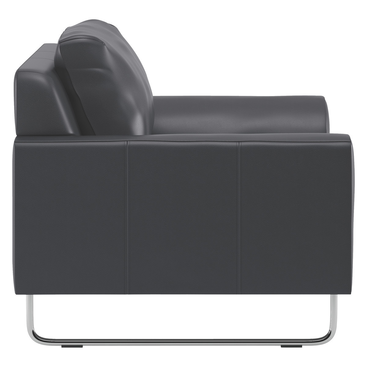 With large, squashy cushions and curved arms that soften its angular lines, the Lyle black leather armchair is a relaxed, contemporary design. Perched on chromed ski legs, the inviting armchair's narrow frame allows a generous seat for its size;its cushions have a neat tucked detail on their corners and are removable for regular plumping. The armchair is hand made to order and is part of the Lyle range, available in various sizes with fabric or leather upholstery in a choice of colours.