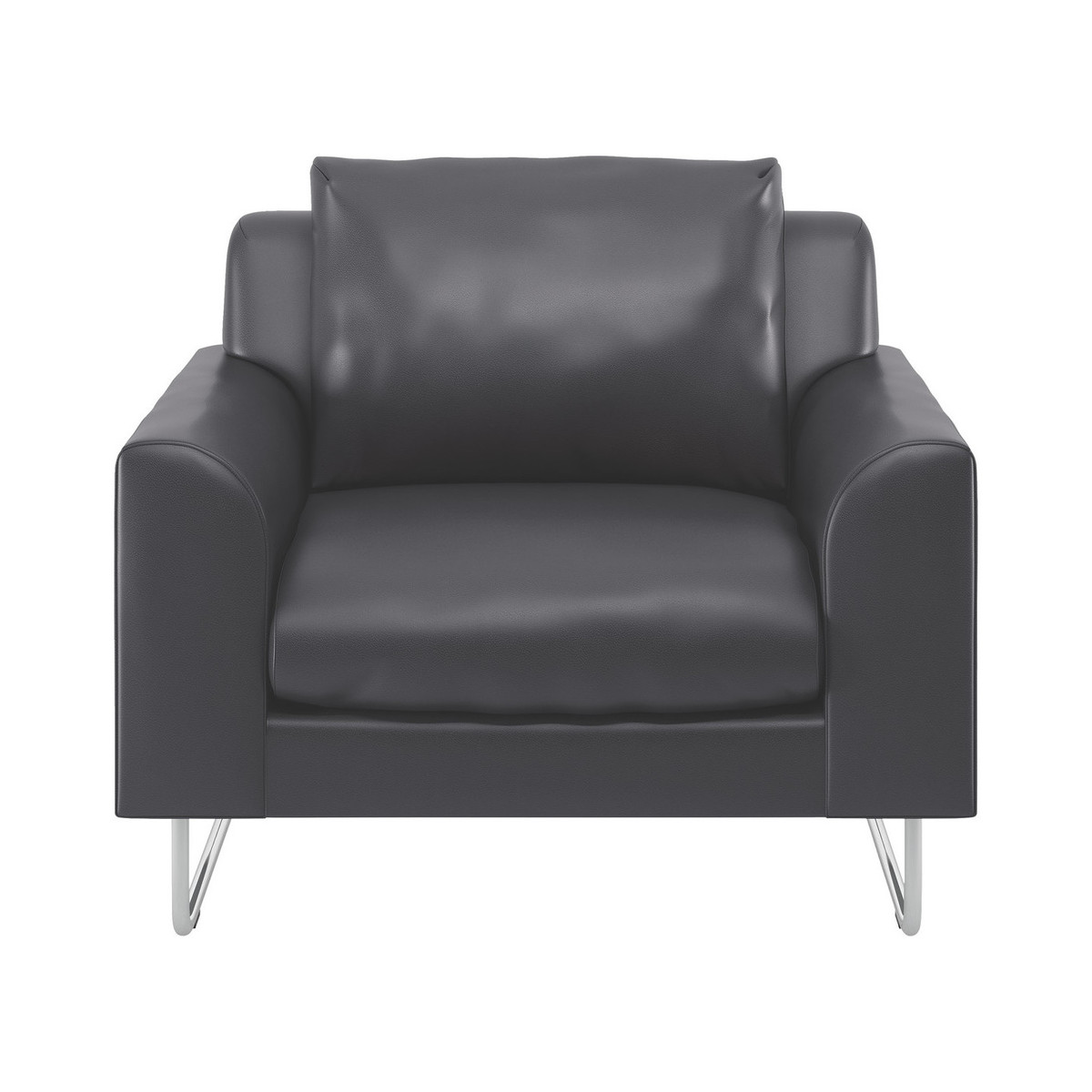 I love the sleek, modern feel of this armchair, making it a versatile piece for a variety of interiors. Its black leather finish offers a timeless, sophisticated look that works well in contemporary, industrial, or even minimalist settings. The metal legs add a touch of backbone and contrast, giving it an edgy vibe. Practical styling tips include pairing it with textured cushions or a cosy throw to soften the look, while placing it alongside lighter or contrasting colours to create visual interest. It’s ideal as a statement piece in a living room or as a stylish accent in a home office, where both comfort and style are key.