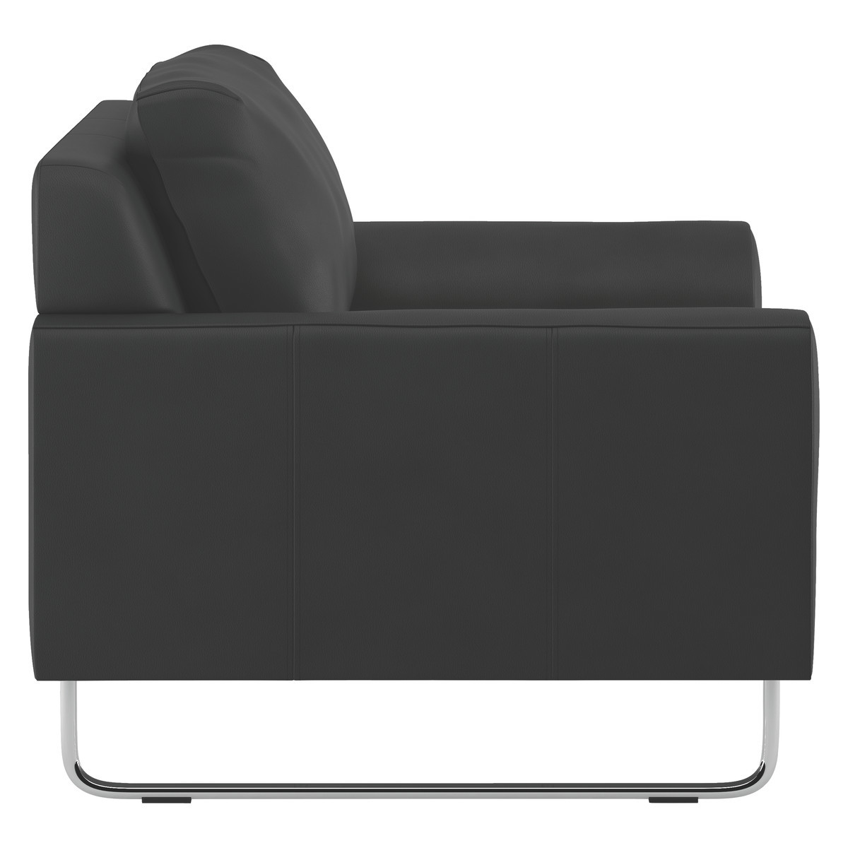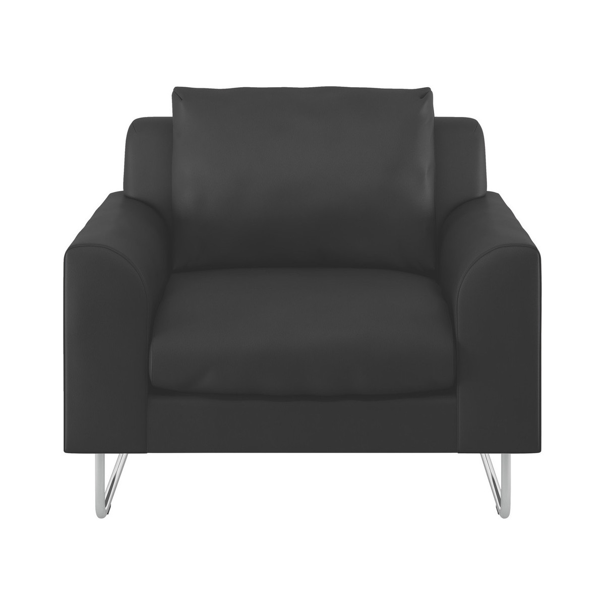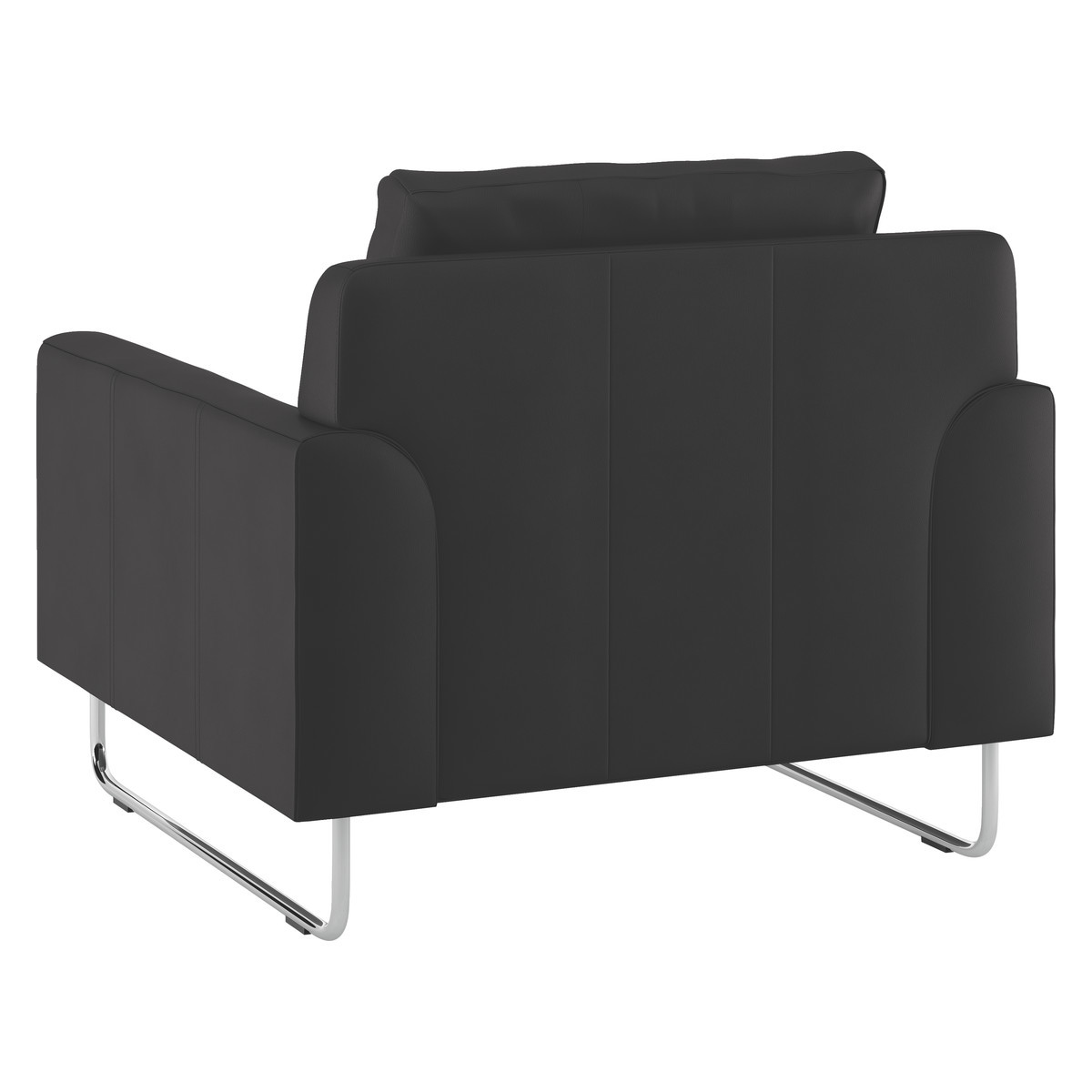 With large, squashy cushions and curved arms that soften its angular lines, the Lyle black premium leather armchair is a relaxed, contemporary design. Perched on chromed ski legs, the inviting armchair's narrow frame allows a generous seat for its size;its cushions have a neat tucked detail on their corners and are removable for regular plumping. The armchair is hand made to order and is part of the Lyle range, available in various sizes with fabric or leather upholstery in a choice of colours.