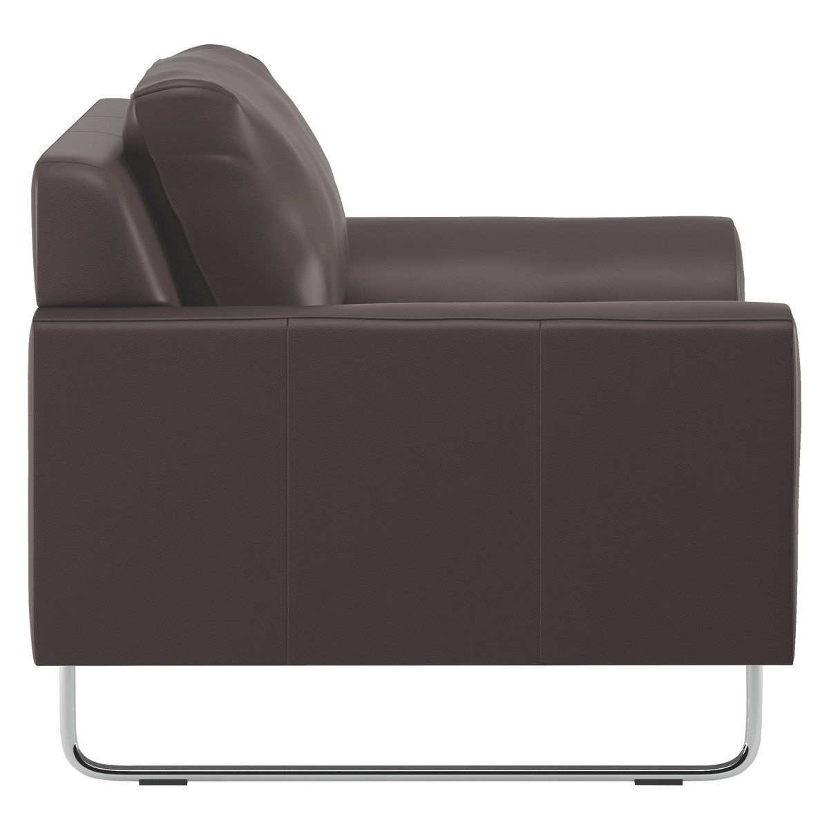 With large, squashy cushions and curved arms that soften its angular lines, the Lyle brown leather armchair is a relaxed, contemporary design. Perched on chromed ski legs, the inviting armchair's narrow frame allows a generous seat for its size;its cushions have a neat tucked detail on their corners and are removable for regular plumping. The armchair is hand made to order and is part of the Lyle range, available in various sizes with fabric or leather upholstery in a choice of colours.