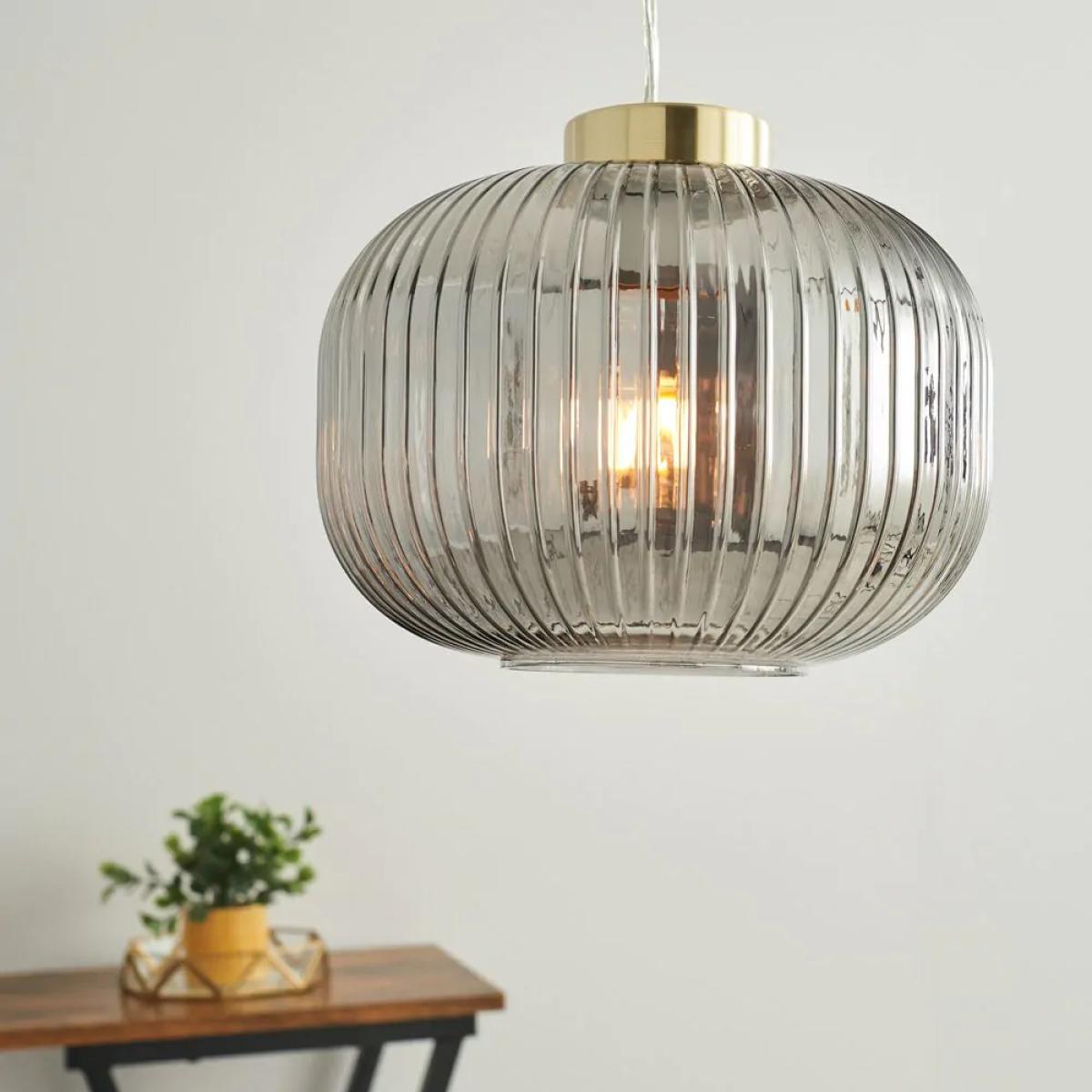 I love this pendant for its contemporary yet versatile look. The smoked glass shade with satin brass detail makes it ideal for adding warmth and sophistication to a variety of interiors. It works particularly well in modern or industrial-inspired spaces, but the soft smoked finish also allows it to blend seamlessly in more minimalist or eclectic settings. Practical styling tips include hanging it over a dining table or in a kitchen peninsula for focused task lighting, and pairing it with warm-toned bulbs to highlight the brass accents. Its shape and finish make it a great statement piece without overwhelming the space, giving a polished yet approachable vibe.