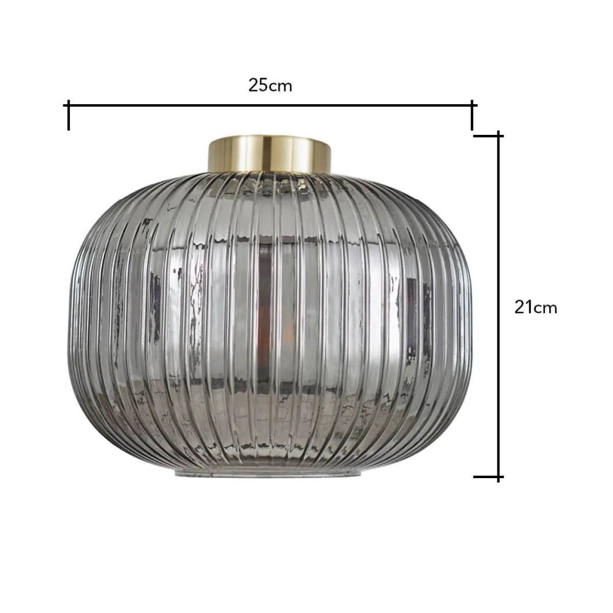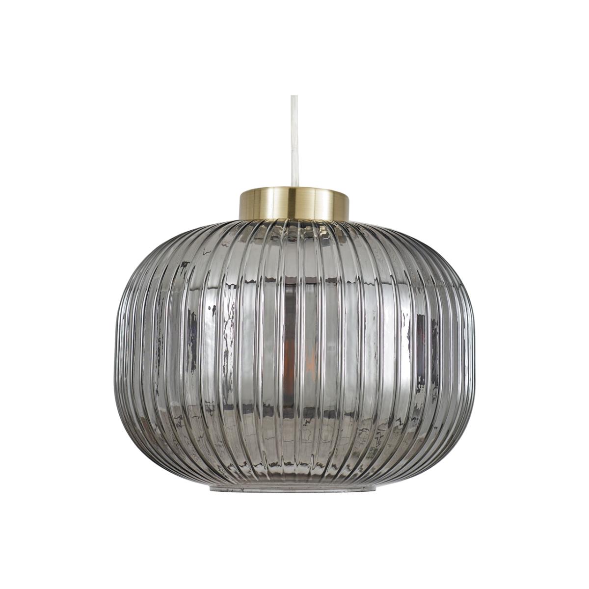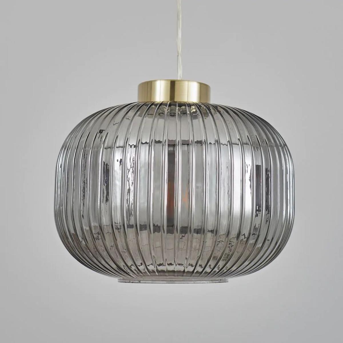 The Lyna Easyfit Smoked Glass Shade in Satin Brass adds some 1920s flair to any room. This art deco ceiling light shade brings a distinctive ribbed lighting effect to the room when illuminated, especially when paired with our vintage style filament light bulbs (sold separately). The satin brass accent brings elegance to this glass ceiling light shade.