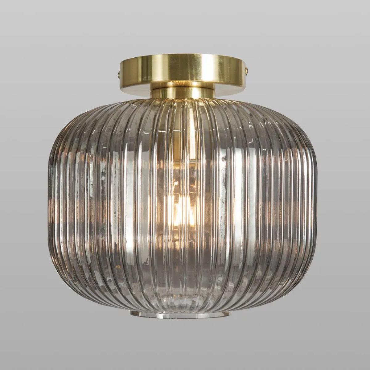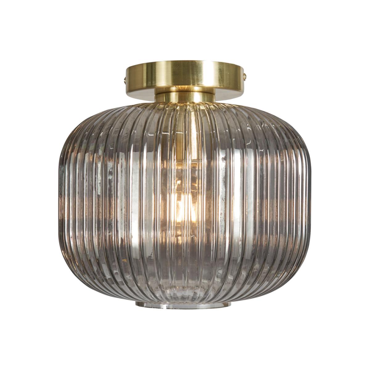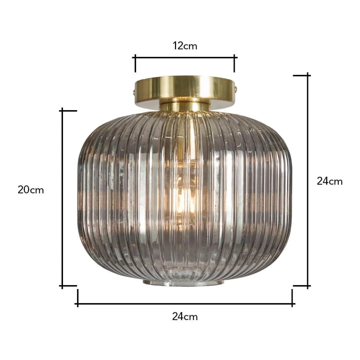 Get a mid-century modern look to suit low ceilings with the Lyna Flush Ceiling Light in Smoke and Brass. The smoky hue and brass accents add a touch of modern elegance to your space, while the ribbed glass inspires a sophisticated aesthetic. This fixture offers a seamless and stylish solution to enhance your ceiling lighting, perfect for hallways and landings.