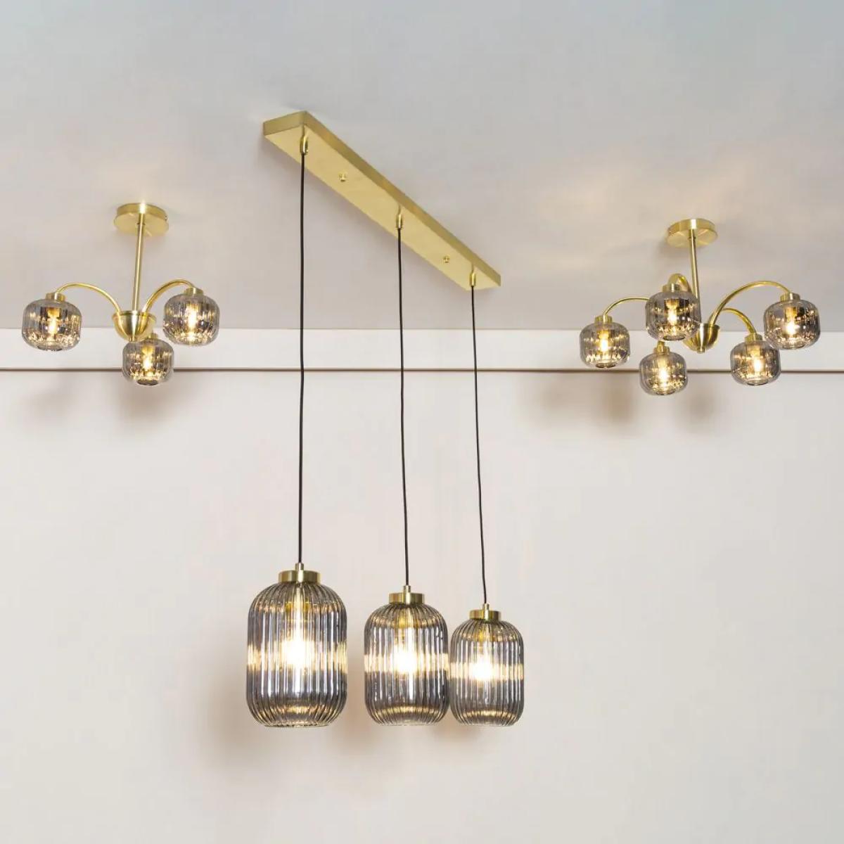 I love this flush ceiling light’s combination of smoked glass and brass, which creates a warm, sophisticated feel. It works particularly well in modern or Art Deco-inspired interiors, adding a touch of elegance without overwhelming the space. It’s a versatile piece that complements neutral palettes and can serve as a statement feature in living rooms, bedrooms, or hallways. Practical styling tip: team it with other brass accents or glass fixtures to create a cohesive look, and ensure it’s installed where the lighting can highlight its textured glass for maximum impact. The flush mount design makes it ideal for rooms with lower ceilings, offering both function and style.
