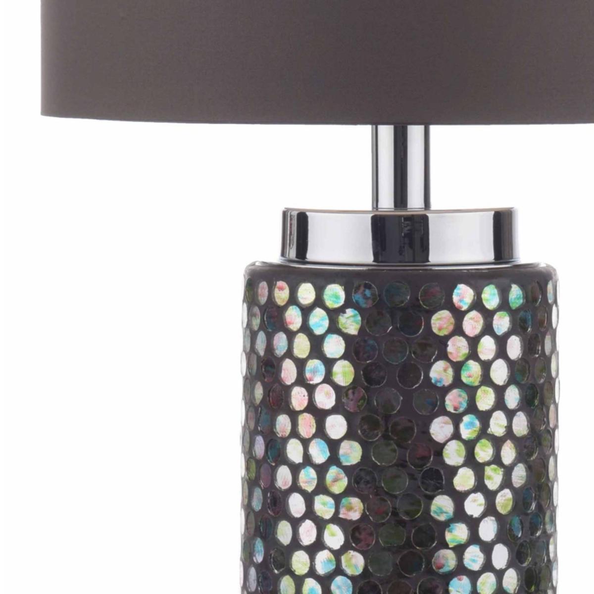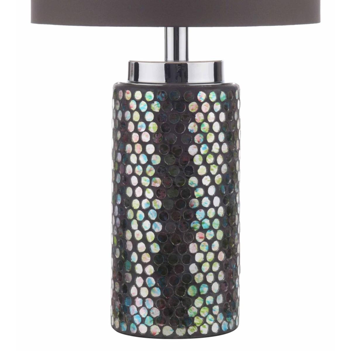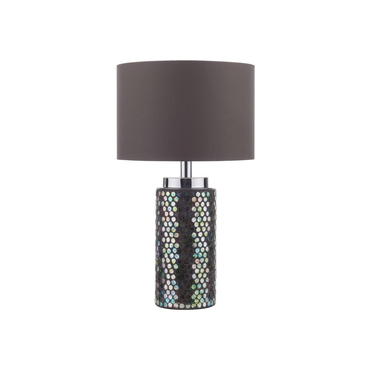 Stunning multicoloured mirror mosaic table lamp complete with a charcoal cotton shade. The Lynes Table Lamp is a beautiful table lamp which reflects designer style and elegance, exclusive to Pagazzi. Boasting a glamorous multicoloured, iridescent round mirror mosaic base, this table lamp is complemented with a charcoal cotton drum lamp shade. Perfect for dressing bedside tables or adding a stylish touch to living areas, this table lamp is set to be a showstopper. Pagazzi offers a range of LED bulbs up to 100w equivalent. Stunning multicoloured mirror mosaic table lamp complete with a charcoal cotton shade. The Lynes Table Lamp is a beautiful table lamp which reflects designer style and elegance, exclusive to Pagazzi. Boasting a glamorous multicoloured, iridescent round mirror mosaic base, this table lamp is complemented with a charcoal cotton drum lamp shade. Perfect for dressing bedside tables or adding a stylish touch to living areas, this table lamp is set to be a showstopper. Pagazzi offers a range of LED bulbs up to 100w equivalent.