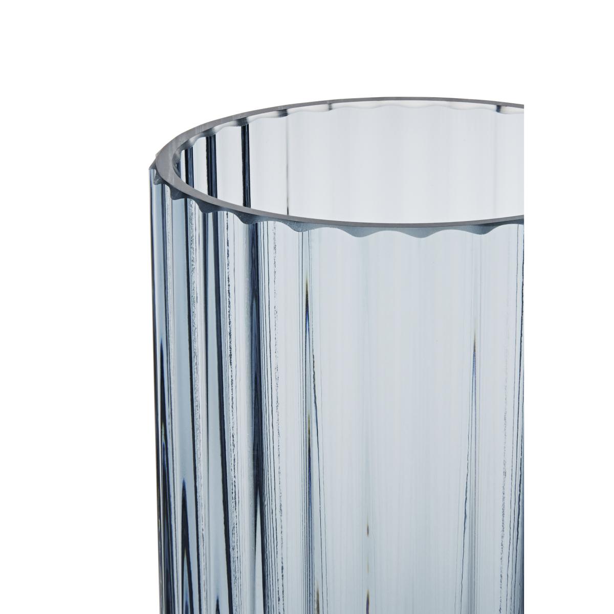 Lyngby vase glass midnight blue from Danish Lyngby Porcelain, made from mouth blown glass, is an elegant addition to your decor, with its grooved design and cylinder-shaped form. The deep blue hue of this glass vase helps to highlight colourful flower bouquets and dried twigs in a beautiful way. Place this Lyngby vase as a colourful eye-catcher on the dining table or as an elegant detail on a bookshelf.