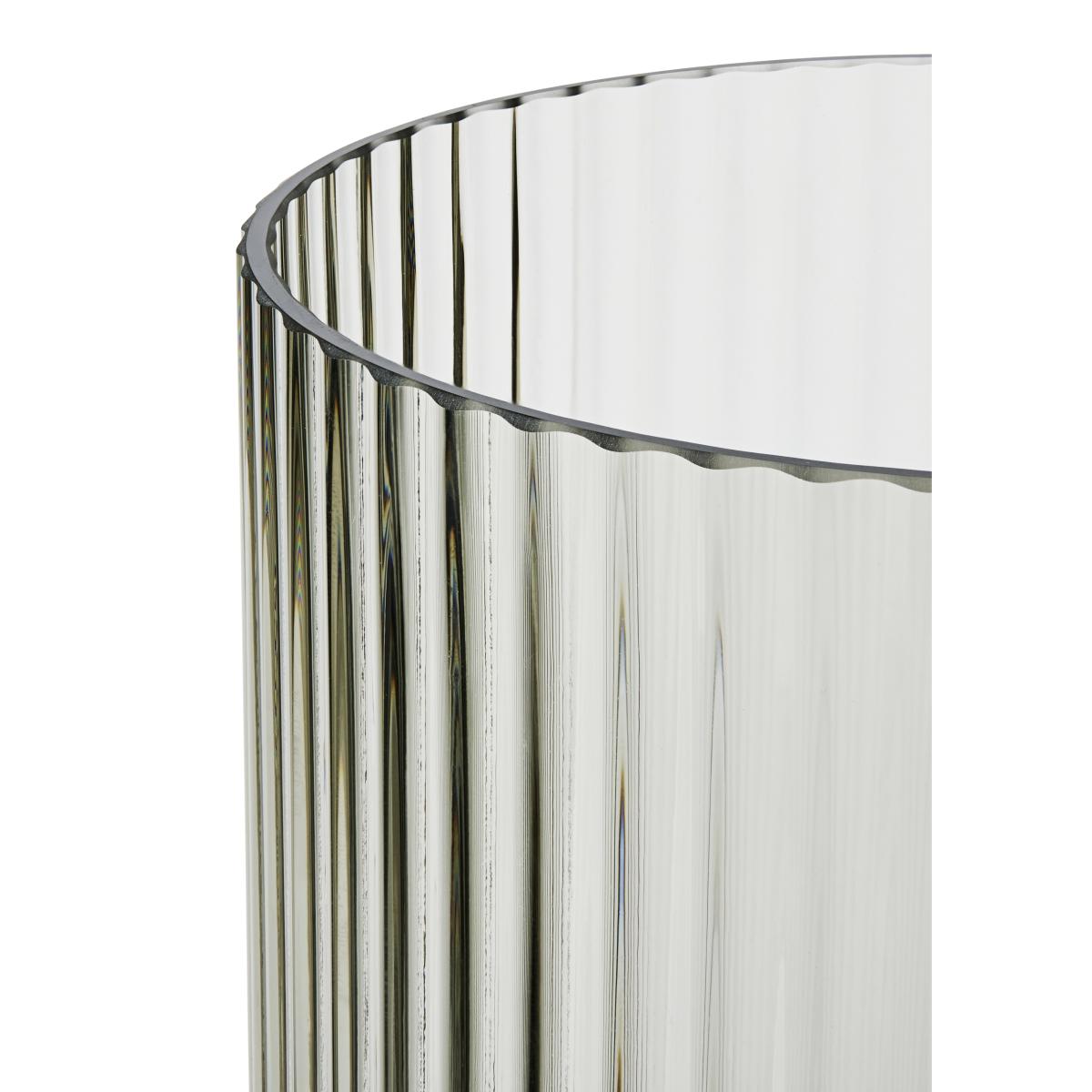 The smoke-colored Lyngby glass vase is made of mouth-blown glass and is a new interpretation of the classic porcelain Lyngby vase. The original design was launched in 1936 and is today seen as a real Danish design classic. The ruffled relief structure was inspired by the Bauhaus-movement in Germany, and feels just as modern today as it did then.