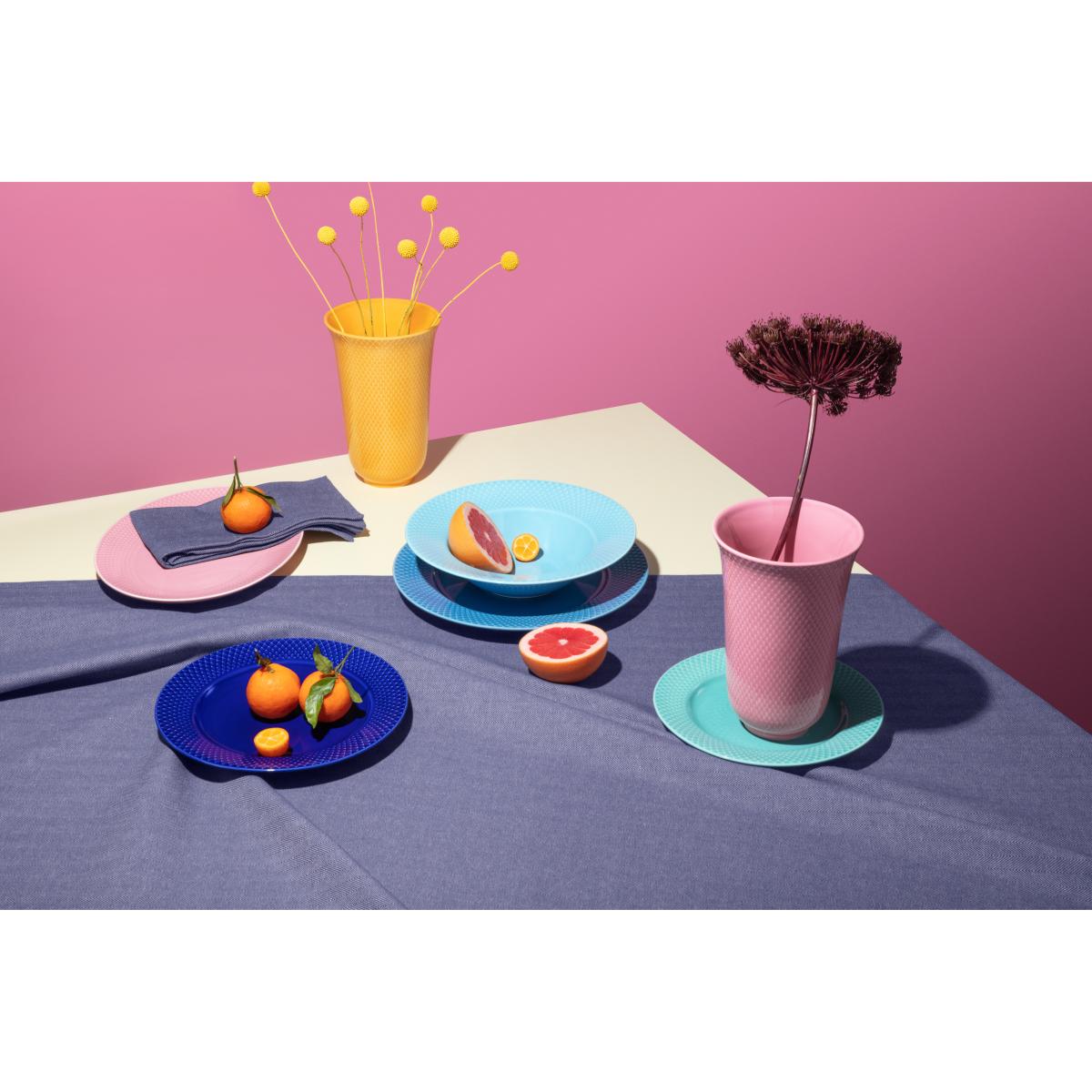 The Rhombe vase 20 cm by Lyngby Porcelæn is made of porcelain and designed by Stilleben. The vase takes its inspiration from an historic glass vase in Lyngby Porcelæn's archive. Now it has a whole new lease of life in porcelain with the characteristic Rhombe relief and coloured glaze. The timeless and elegant Rhombe vase is perfect for small flower arrangements or tied bouquets and will breathe life into any room.