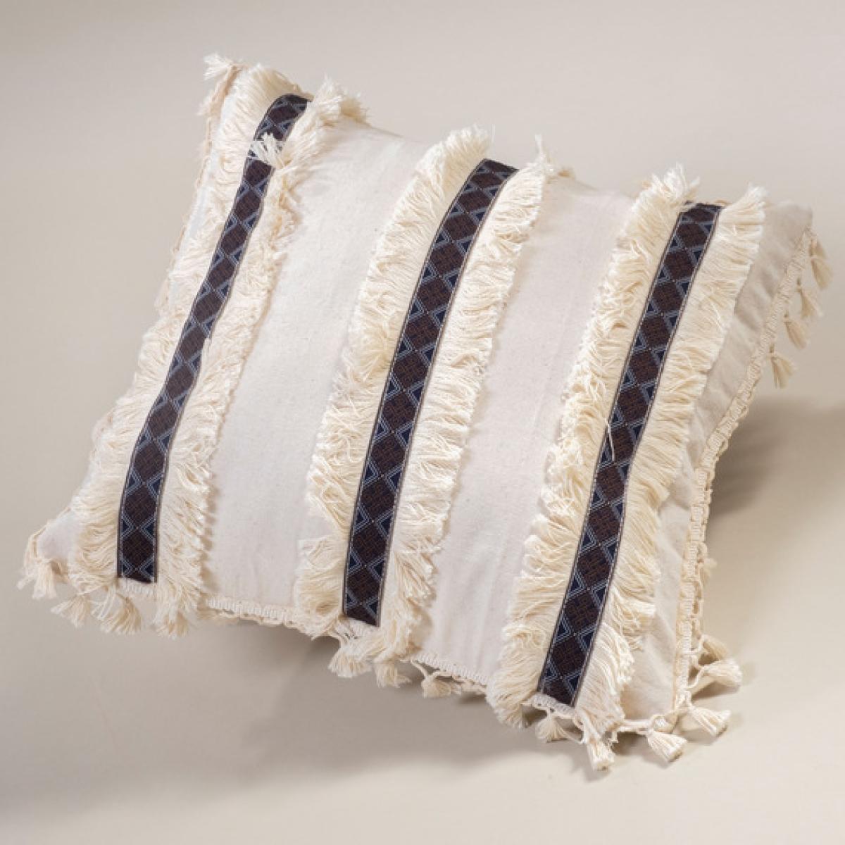 I love this cushion cover for its versatile, understated style-its raw linen texture and subtle striped pattern lend it a relaxed, natural vibe that works well in both contemporary and rustic interiors. The tasseled detailing adds a touch of boho charm, making it perfect for layered seating areas or sofa styling. I’d suggest pairing it with neutral tones or complementary textures like wicker or wood for a cohesive look. This cushion is a practical choice for adding comfort and visual interest without overwhelming the space, making it ideal for lounge areas or bedrooms with a laid-back aesthetic.