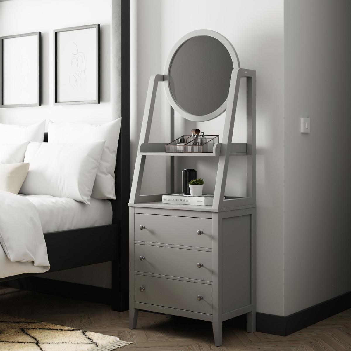 Lynton 3 Drawer Standing Dressing Table with Mirror, Grey Grey