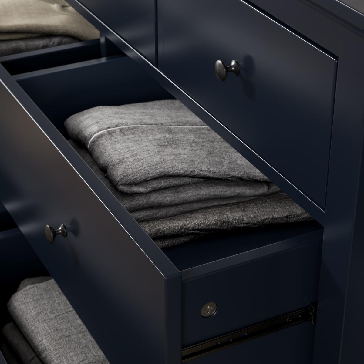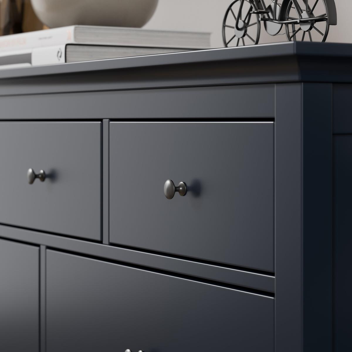 Dunelm Exclusive - Designed and Developed by Dunelm Beautifully crafted with a seamless lacquer coated finish, the Lynton range offers a classic country house styling with a simplistic design. This self-assembly range is sure to add an elegant and traditional touch to your home. This chest of drawers features four larger drawers and three small drawers, to provide generous storage space. This chest of drawers comes complete with full extension runners, grey drawer internals and brushed grey metal handles. Care Instructions: Only clean using a damp cloth and mild detergent, do not use bleach or abrasive cleaners. From time to time check that there are no loose screws on this unit. Remove any spills immediately to avoid staining and dust regularly with a soft lint free cloth or duster. This Range is also available in Black and Grey.
