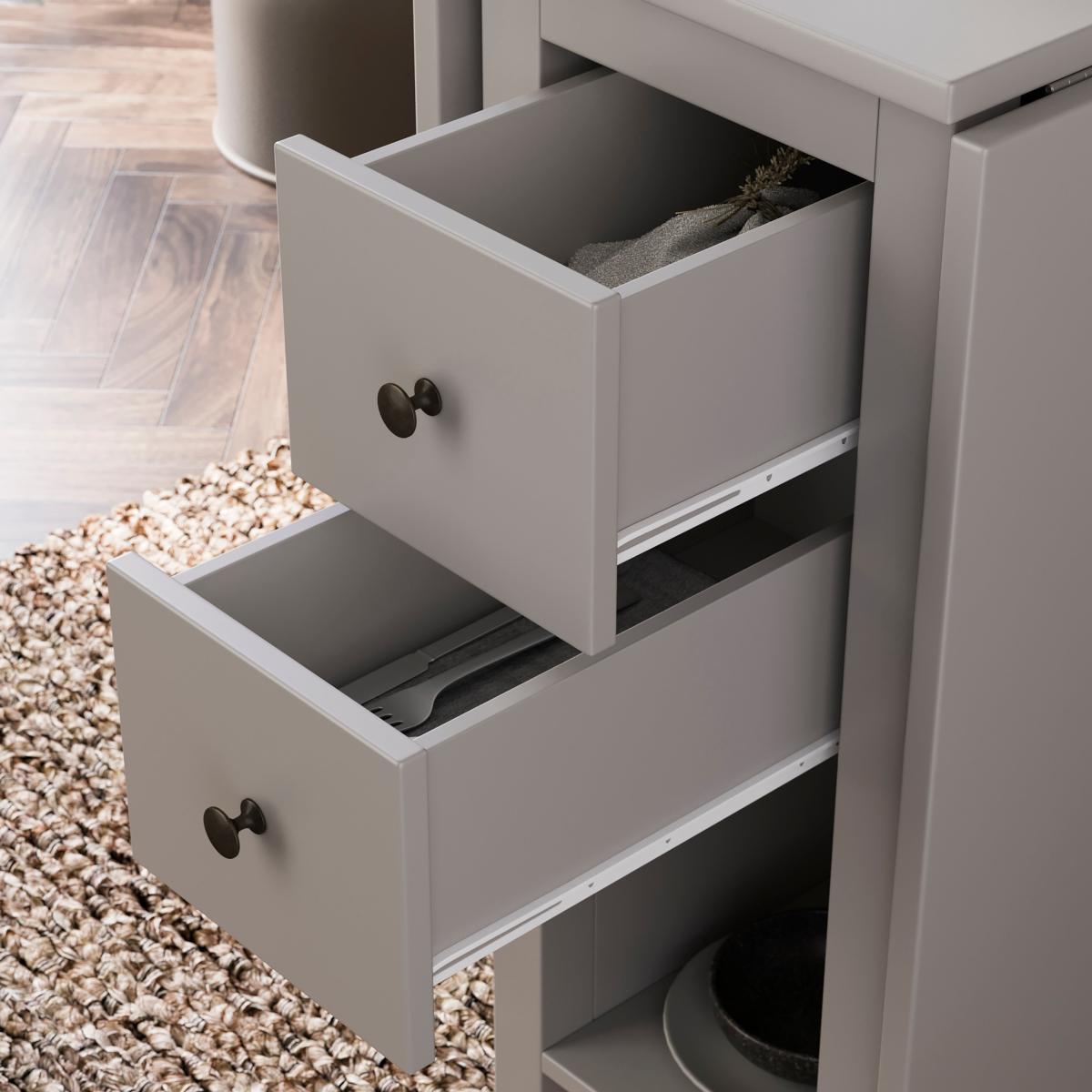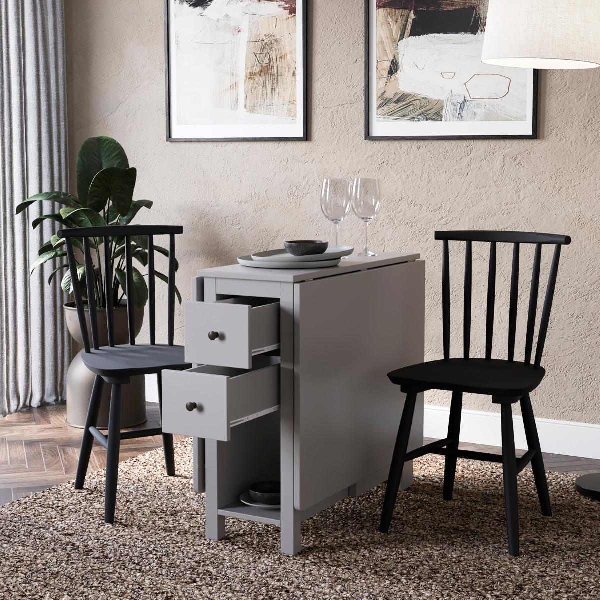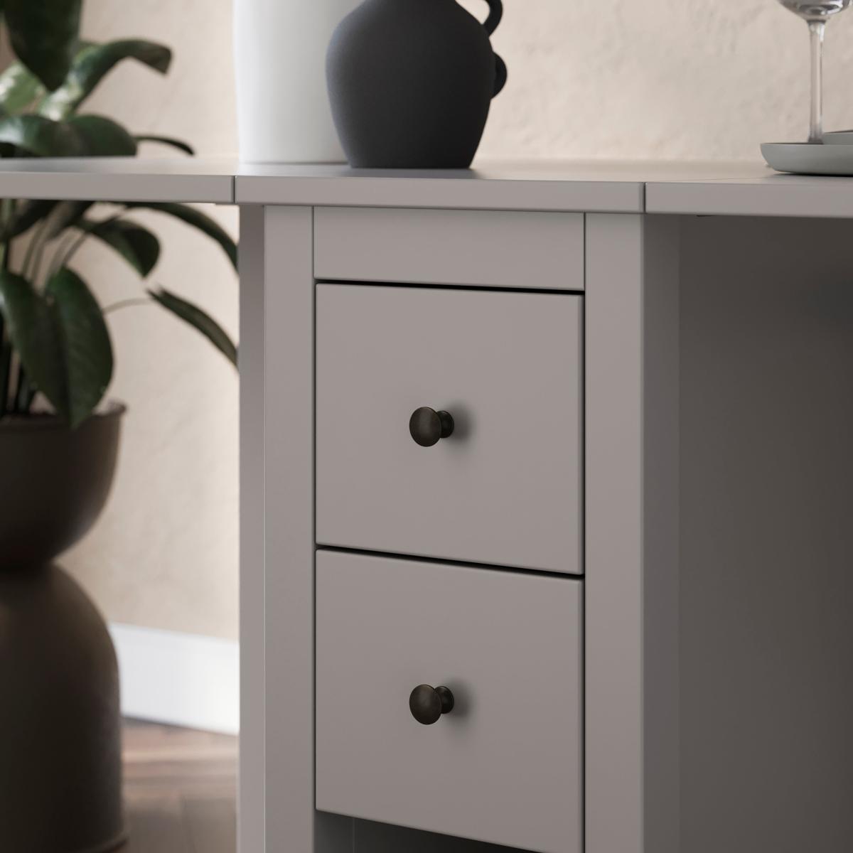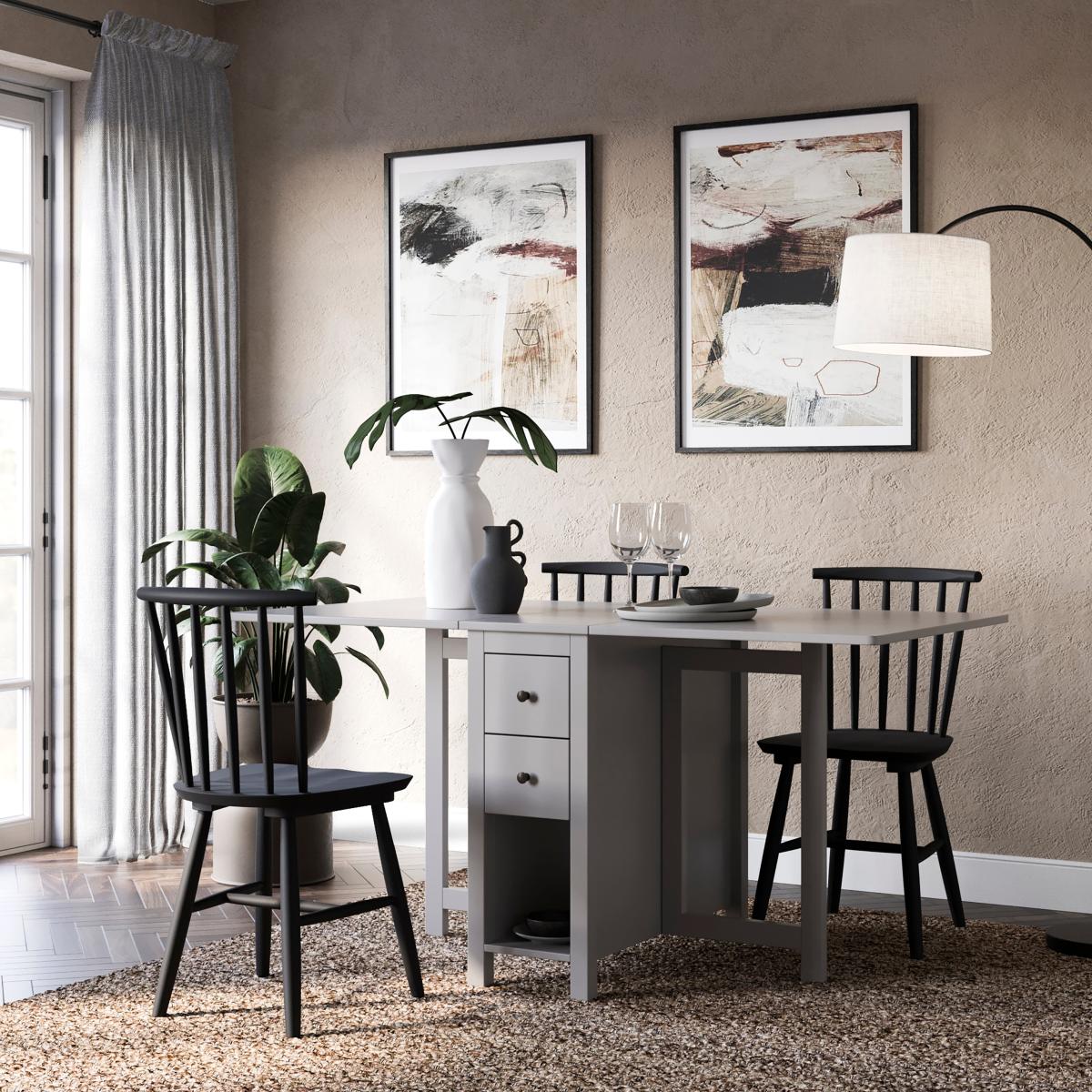 I’m a big fan of the Lynton dropleaf for its blend of classic Shaker lines and everyday practicality - in a small kitchen you can fold it right down, then pop the leaves up when guests arrive. The soft grey finish works equally well in Scandi-inspired schemes, coastal cottages or modern farmhouse settings. Styling tip: pair it with simple black Windsor chairs and a natural-fibre rug to ground the look, then keep tabletop clutter to a minimum - a stoneware jug of seasonal foliage or a neat stack of linen napkins keeps things fresh. Don’t forget to use the little drawers for cutlery or stationery, turning the table into a versatile dining or workspace.